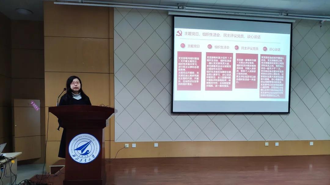 开班仪式后,由管理学院王娟老师以“落实职责 优化结构 坚持标准”为主题,为学员进行培训班的第一讲。王老师从“管理学院学生党支部日常工作规范”、“发展党员流程”两个方面为大家展开了本次党课讲授。