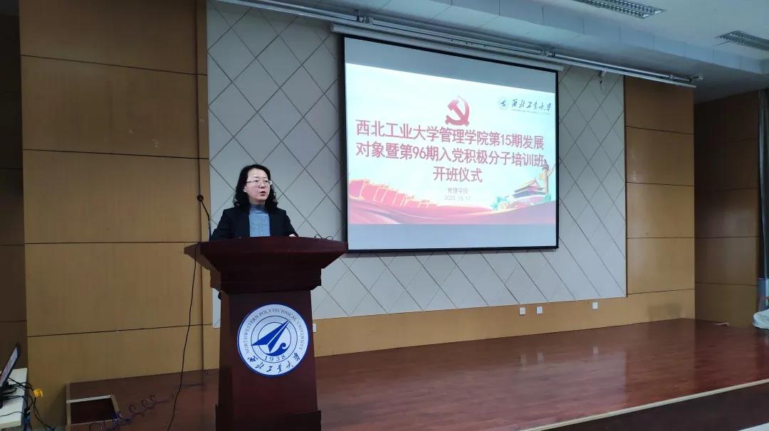 2020年10月17日上午,管理学院于报告厅召开了第15期发展对象暨第96期入党积极分子培训班开班仪式。开班仪式由管理学院院长助理白洁主持,2020级辅导员王娟老师进行党课培训第一讲。