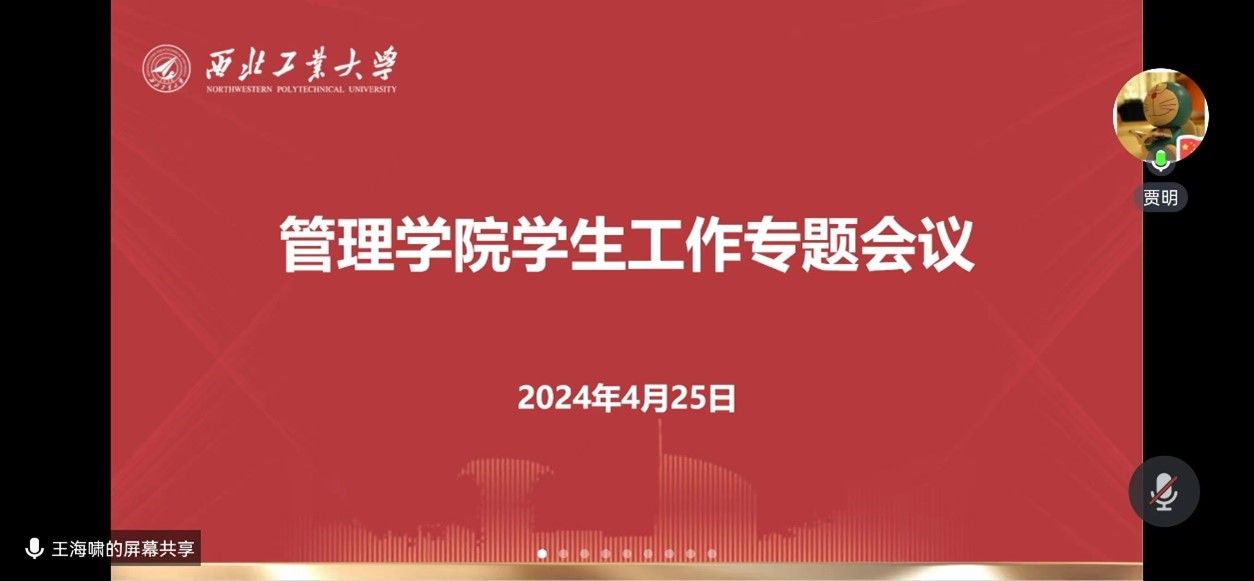 为进一步做好学生日常教育管理,坚决筑牢校园安全稳定防线,4月25日晚,管理学院线上召开学生工作专题会议。学院党委书记张爽、副院长贾明、党委副书记王海啸、院长助理白洁以及全体教师、学生工作干部参加了会议,会议由王海啸主持。