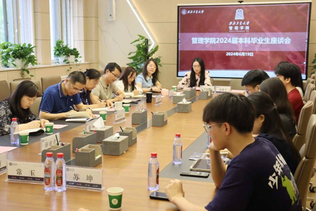 6月19日上午,管理学院2024届本科生毕业座谈会在学院212会议室举行。学院院长车阿大、党委书记张爽、副院长陈琳、党委副书记王海啸、院长助理白洁、各系系主任、毕业年级辅导员、本科生教学秘书以及12名本科毕业生代表齐聚一堂,以座谈会见证成长与收获。会议由党委副书记王海啸主持。