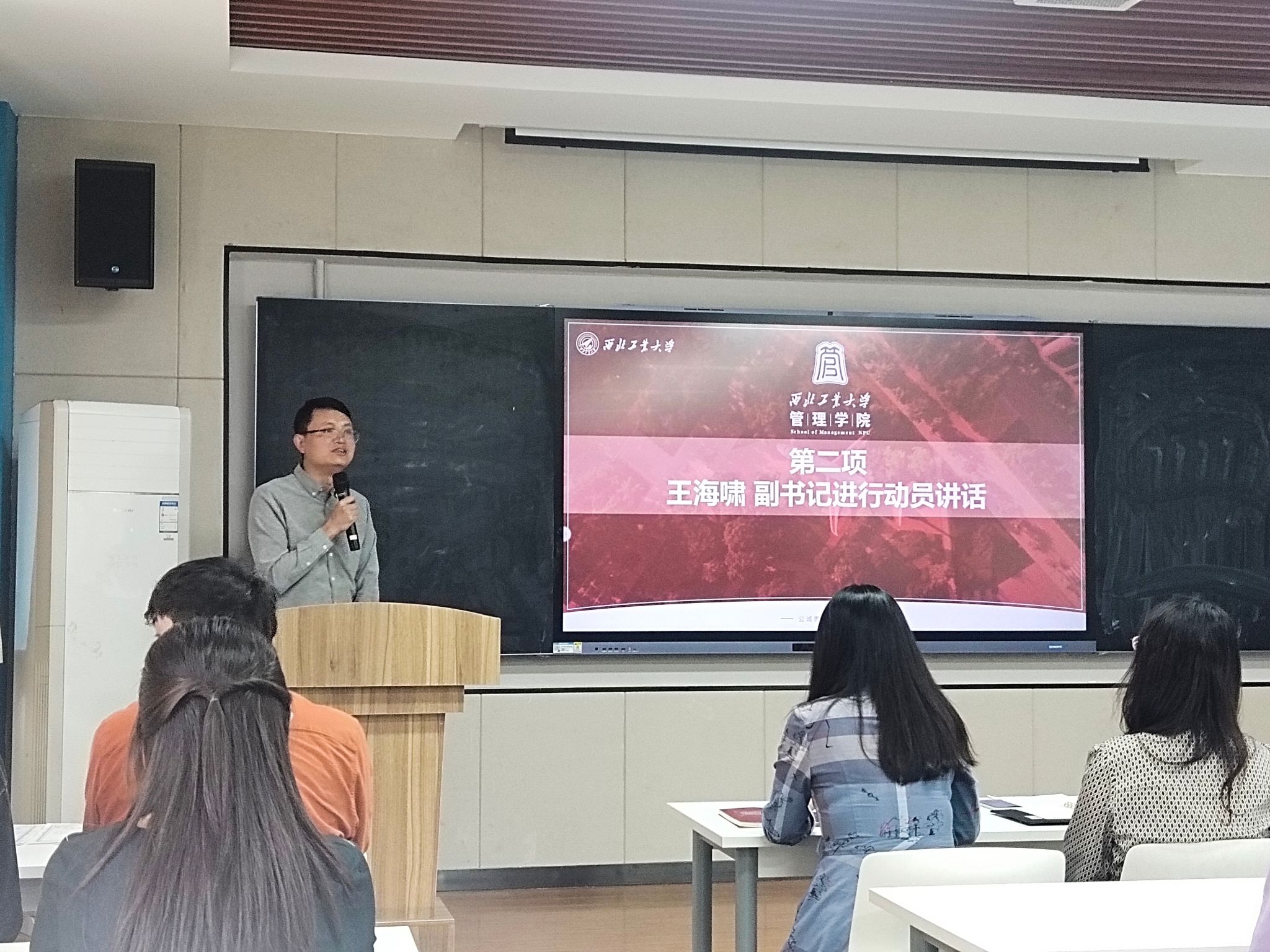 会上白洁宣读了《西北工业大学管理学院学生党员“学业领航计划”实施方案》,并详细介绍了计划的目标、内容和实施步骤,包括考研指导帮扶和课程答疑辅导等活动内容。
