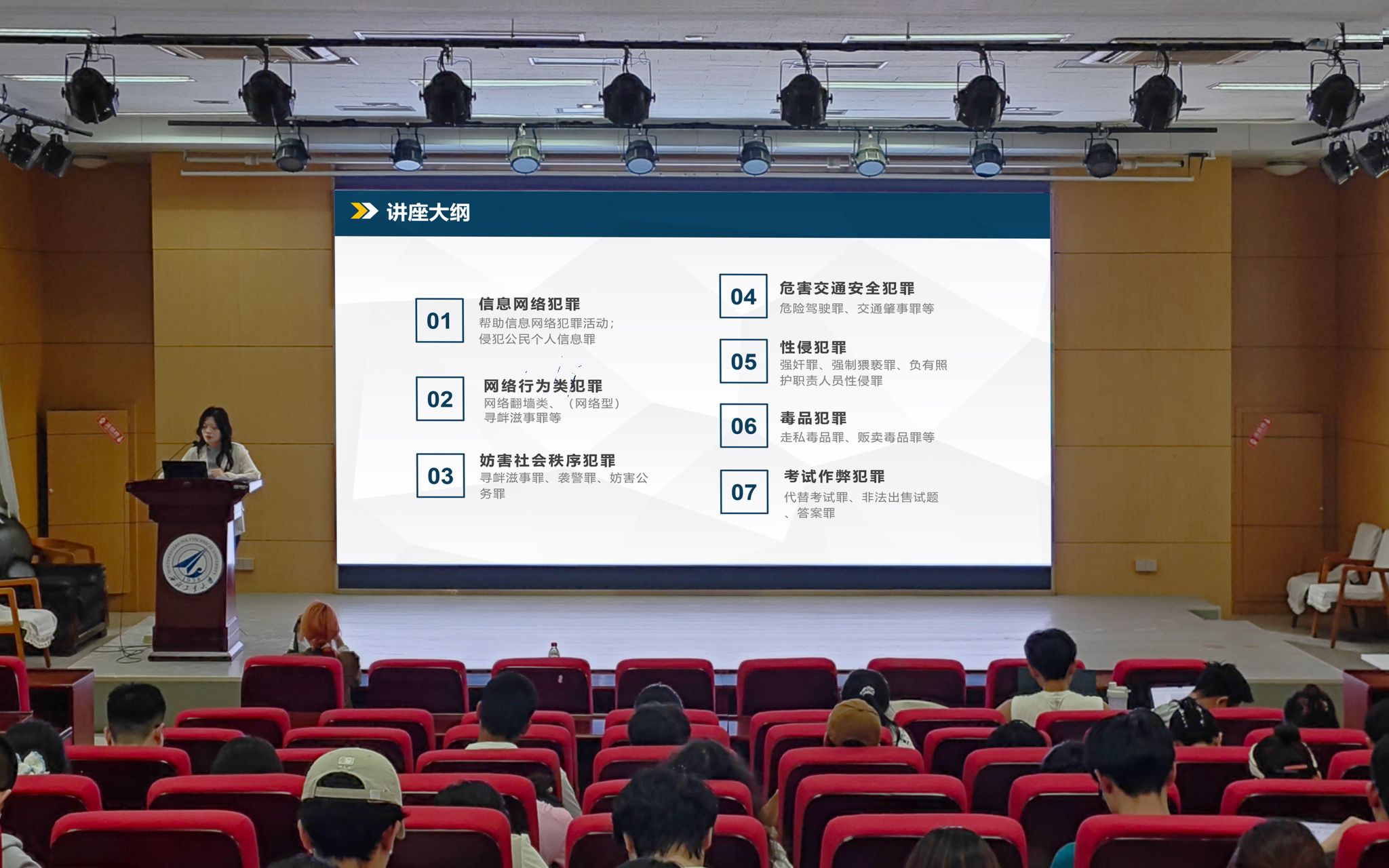 为深化安全教育和法治教育实效,引导学生筑牢法律意识、规范言行举止,4月25日,管理学院联合北京市中闻(西安)律师事务所举办了《青春与法同行—大学生预防犯罪以案释法》专题报告,近200名学生聆听了报告。活动由2024级本科生辅导员张宇主持,王家瑶律师担任主讲。