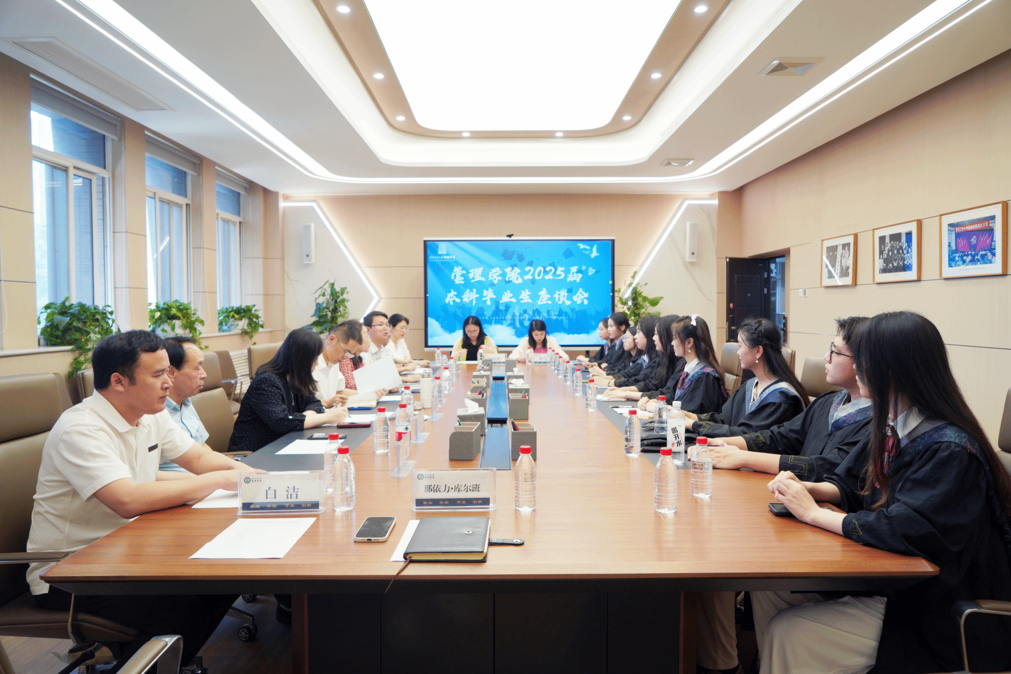 6月16日上午,管理学院2025届本科生毕业座谈会在学院212会议室举行。学院院长车阿大、党委书记张爽、副院长陈琳、党委副书记王海啸、各系系主任、毕业年级辅导员、本科生教学秘书以及11名本科毕业生代表齐聚一堂,以座谈会见证成长与收获。会议由王海啸主持。