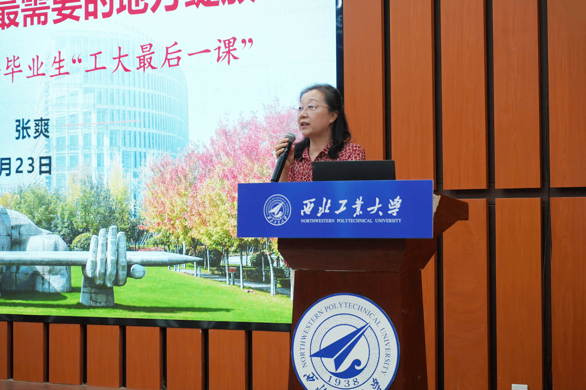 授课过程中,张爽带领同学们回顾了学校脉源三支、强强联合的发展历程,解读了学校“为党育英才、为国铸重剑”的使命担当,介绍了近年来学校在办学方面取得的一系列重要成果,诠释了西北工业大学的“胸怀、担当、精神”,并结合学校“天下工大、世界三航”远景目标,勉励全体毕业生厚植“国之大者”的家国情怀,将个人理想融入国家发展大局,让青春在党和人民最需要的地方绽放绚丽之花。
