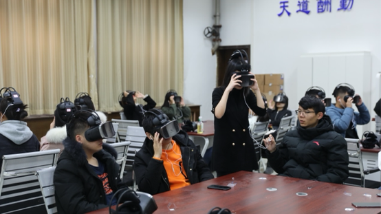 首先,禹萌院长介绍了我校管理学院智能财务云VR实验室建设的基本情况,以及中兴新云财务云学院的主要业务,探讨了数智时代财务人才转型趋势。接着,中兴新云财务云学院王沫萱具体介绍了VR实验课程的设置以及课程主要模块。最后,师生们共同体验了VR头盔的具体使用以及整个实验流程。现场,老师和学生们借助VR虚拟现实交互技术,沉浸式体验跨国企业业财一体化流程场景,了解财务信息化、自动化、智能化、数字化前沿技术的应用与实践。