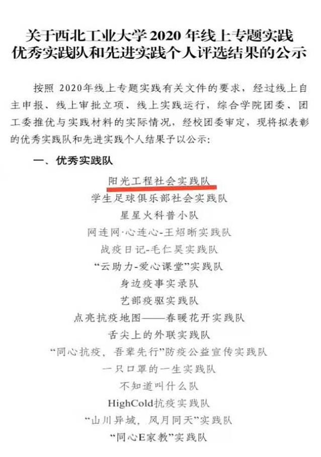 今年疫情期间,为减少疫情的扩散,全国人民都开启了居家模式。与此同时,迫于升学压力,高三莘莘学子还在为2020年的高考奋战。由“阳光工程“青年志愿者服务队组织开展的线上支教活动正式开始,先后帮助了近千名高三学子。在2020年我校线上专题实践中荣获“优秀实践队”称号。