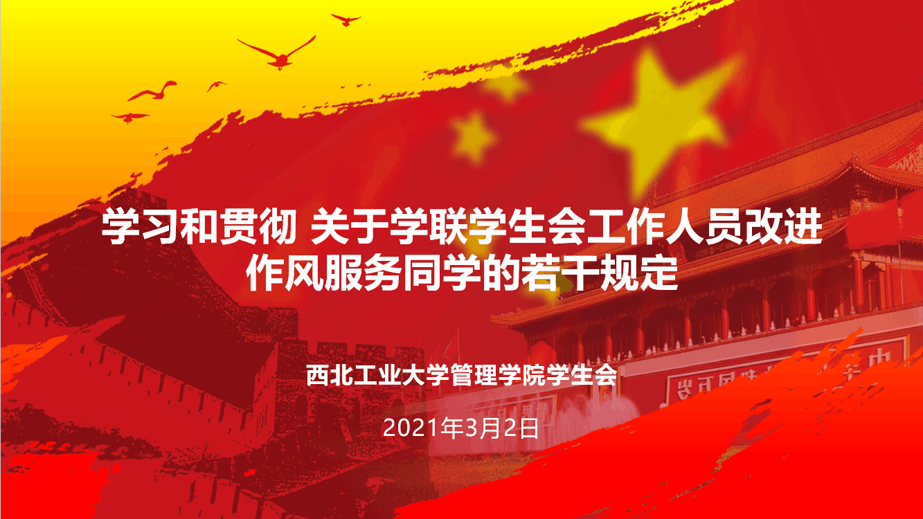 为深入学习和贯彻关于落实关于学联学生会工作人员改进作风服务同学的若干规定,增强日常管理教育,坚决防范和克服功利化、庸俗化、“小官僚”等问题,学习并贯彻实践学生会工作人员优秀作风,3月2日晚,管理学院学生会以线上会议形式举办学习和贯彻关于学联学生会工作人员改进作风服务同学的若干规定会议,本次会议由管理学院学生会主席团成员陈海峰主持,全体管理学院学生会成员参加了此次交流。