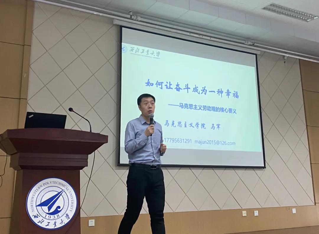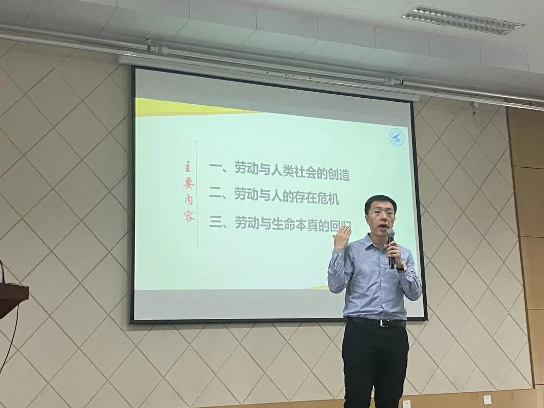 2021年4月30日下午,管理学院《劳动创新与创造实践》课程第二课在管理学院报告厅进行。本次理论课程的主题是“如何让奋斗成为一种幸福——马克思主义劳动观的核心要义”。本次课程由马克思主义学院马军老师主讲。
