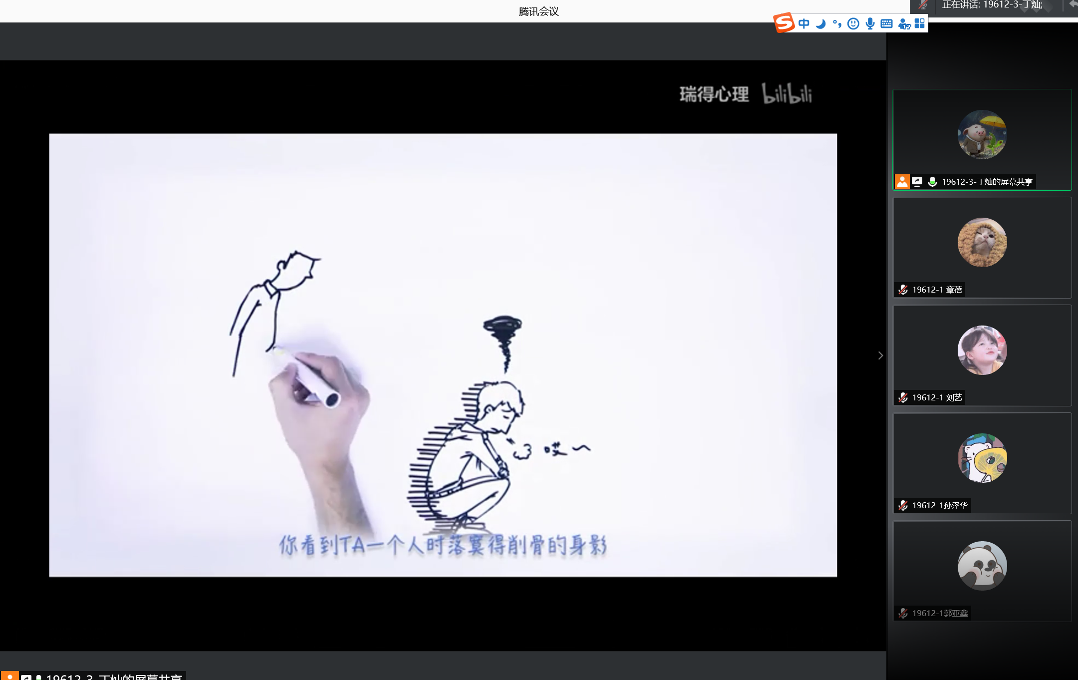 也有一些班级选择以线上的形式开展活动。其中,19612-1班通过两则微电影及小视频,科普了微笑抑郁症等心理学相关知识,最后同学们之间互相交流心得体会。
