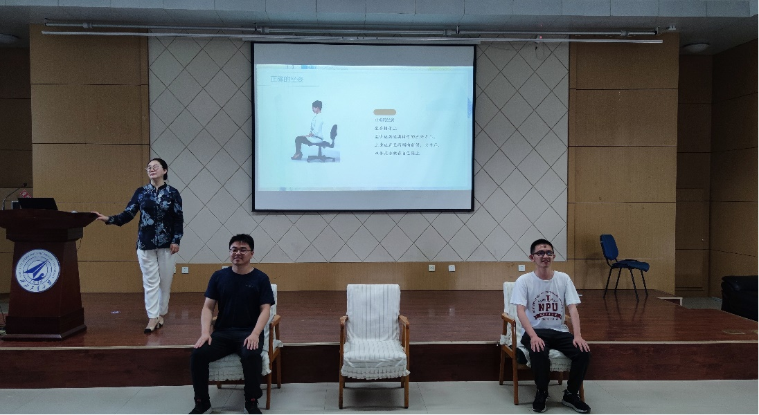 最后,为了让到场的同学能亲身体会仪态,叶子老师设计了互动环节。当场让同学们体验行走、坐的体态礼仪,为同学们纠正错误的体态,同学们的积极性都非常高。经过两三次的锻炼,同学们从一开始的姿势僵硬、不自信,到落落大方、十分自信,效果十分显著。