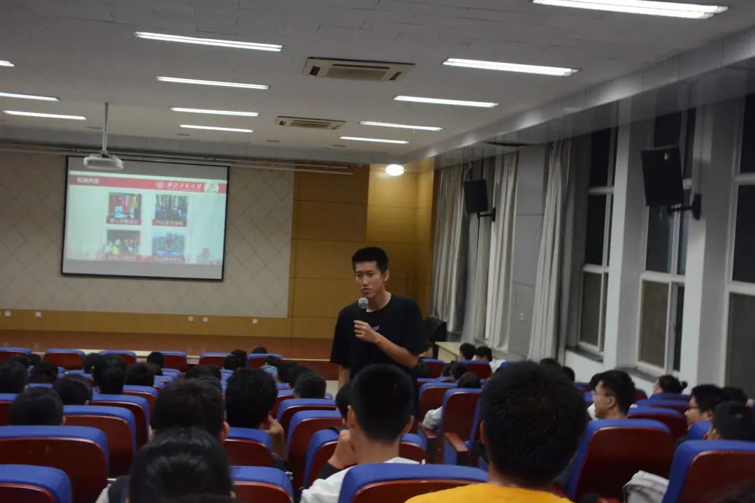 2021年9月5日晚,管理学院暑期社会实践成果分享会在管理学院报告厅举行,大一年级全体新生参与了本次宣讲,学生阳光工程暑期实践队队长李传进、后疫情时代公司人才招聘调研实践队队长李进、七星实践队队长张洪瑾、“探寻工大印记,展望国校振兴”暑期社会实践队队长林雨田依次进行了关于暑期社会实践的宣讲。
