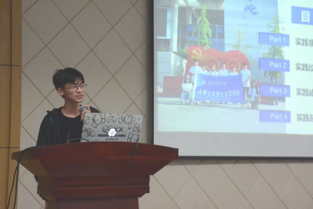 最后,林雨田同学进行了以“探寻工大印迹,展望国校振兴”为主题的暑期社会实践分享汇报。实践队通过走访结合座谈的调研模式,对中共一大二大纪念馆及会址等的红色革命遗址、西工大太仓校区及长三角研究院、校友企业、外资企业等展开调研,围绕学校学科特色、重点工作、工大精神,到国防科工单位、装备基地、试验场所体验学习。