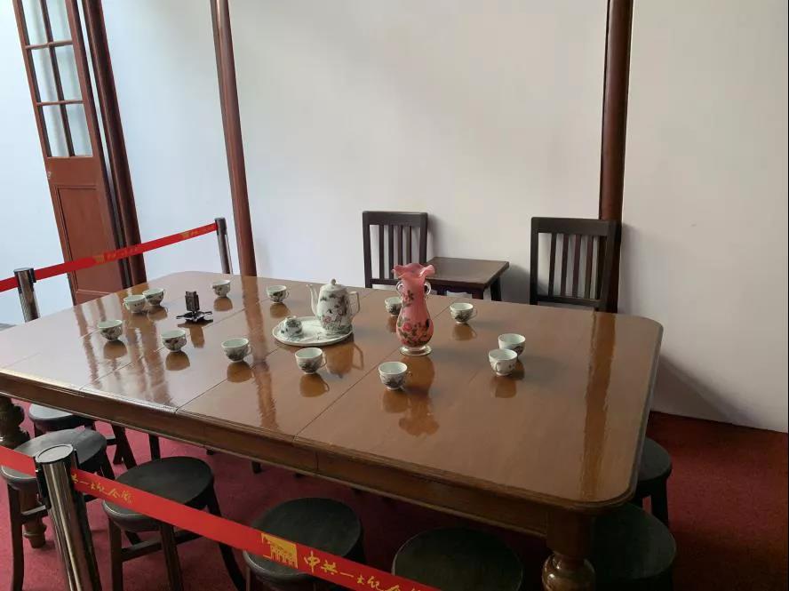 接下来进入的就是中共“一大”会议室旧址,其中所有家具物品的陈设均按有关当事人的回忆,根据原样仿制,使我们有身临其境之感。区区18平方米的会议旧址,不到1000平方米的展区,走在狭窄的楼道、凝视不大的客堂,我们受到的震撼是强烈的:党就是在这么小的地方从无到有发展壮大,星星之火可以燎原。
