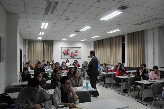 In this evening, Prof. Shen Wei made a lecture entitled as“China -EU relations for 40 years”in the conference room 210 at the School of Management. He also introduced ESSCA and“3+2”joint training project.(School of Management)