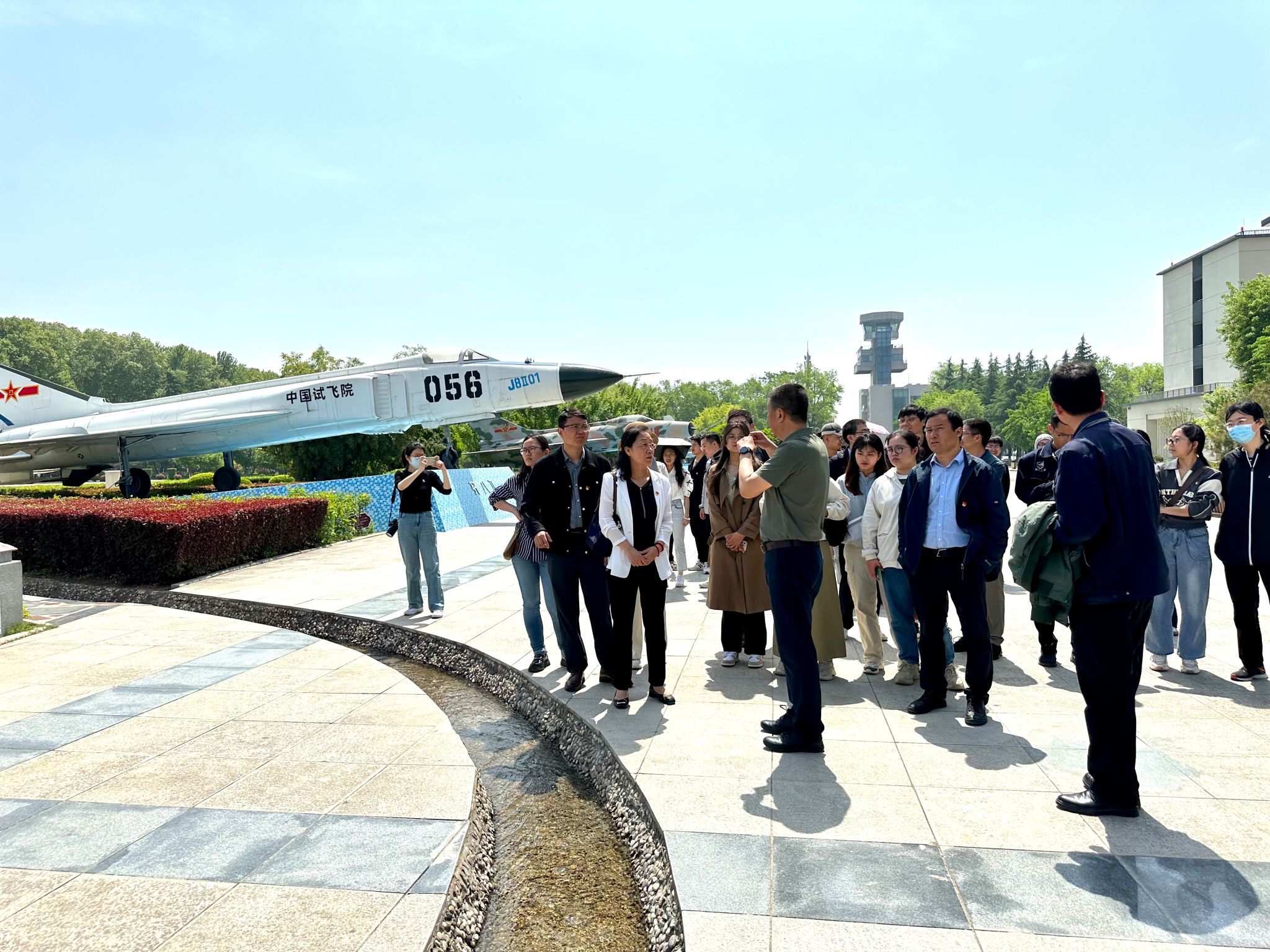 试飞院副总工程师、管理学院90级院友尹建峰热情接待了到访师生,亲自带领大家参观了试飞院院史展厅、试飞文化展馆、功勋飞机园等标志性场所。在试飞院院史展厅、试飞文化展馆,大家全面深入了解了试飞院的发展历程、辉煌成就、精神谱系与前景展望等,感受了几代试飞人航空报国的奉献精神和筑梦蓝天的开拓精神。在功勋飞机园,大家零距离参观了初教六、轰六、歼七、歼八、飞豹、歼十、歼十一、空警-2000等这些见证着我国航空事业光辉成就的功勋飞机,聆听这些飞机试飞过程中勇克艰险的科技攻关故事,感受我国航空工业和试飞事业从无到有、从小到大、从弱到强的历史跨越。