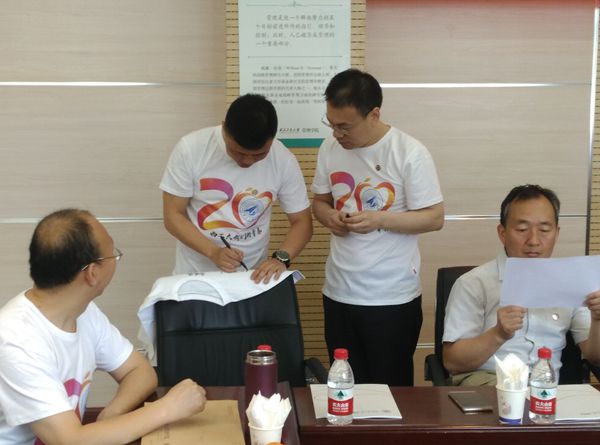 校友们表示无论毕业多久,身处何处,始终会关注母校和学院的发展,用自己的力量,支持母校和学院的建设发展。校友们感恩母校学院的培养,感恩老师的教诲,共同捐赠助学金1万元,帮助成绩优秀、家庭经济困难的学生完成学业。李小聪作为学院校友分会会长与12341班代表张宏江校友现场签署了捐赠协议。