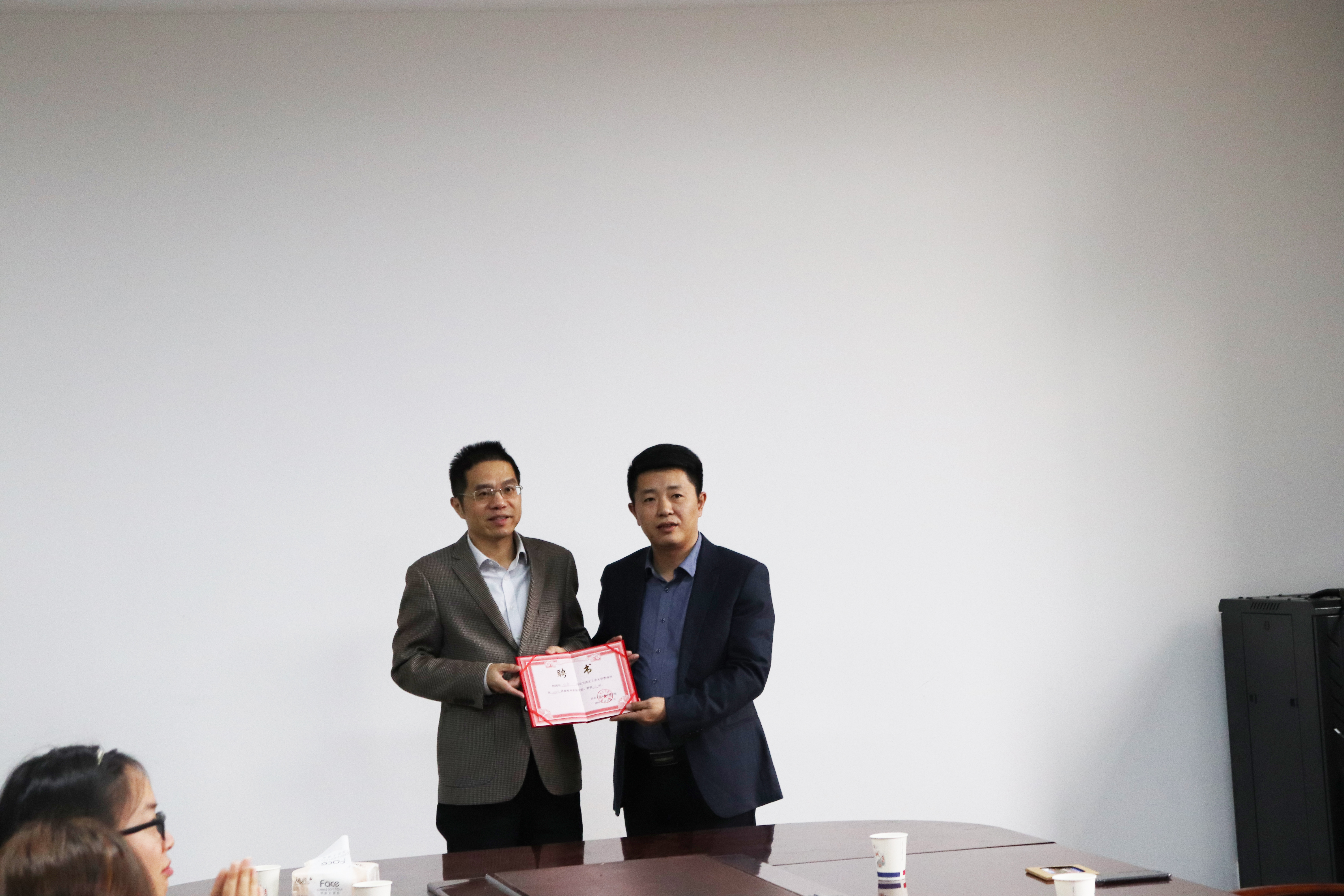 在校友笔会活动结束后,余康校友还受聘成为管理学院12071703班校外导师。管理学院院长车阿大教授为余康颁发聘书,管理学院辅导员张曦赠送《校庆风采》明信片作为礼物。余康校友与该班级学生代表在学业生涯规划、就业前景分析、创新创业教育等方面进行了深入的交流。会后,大家合影留念。
