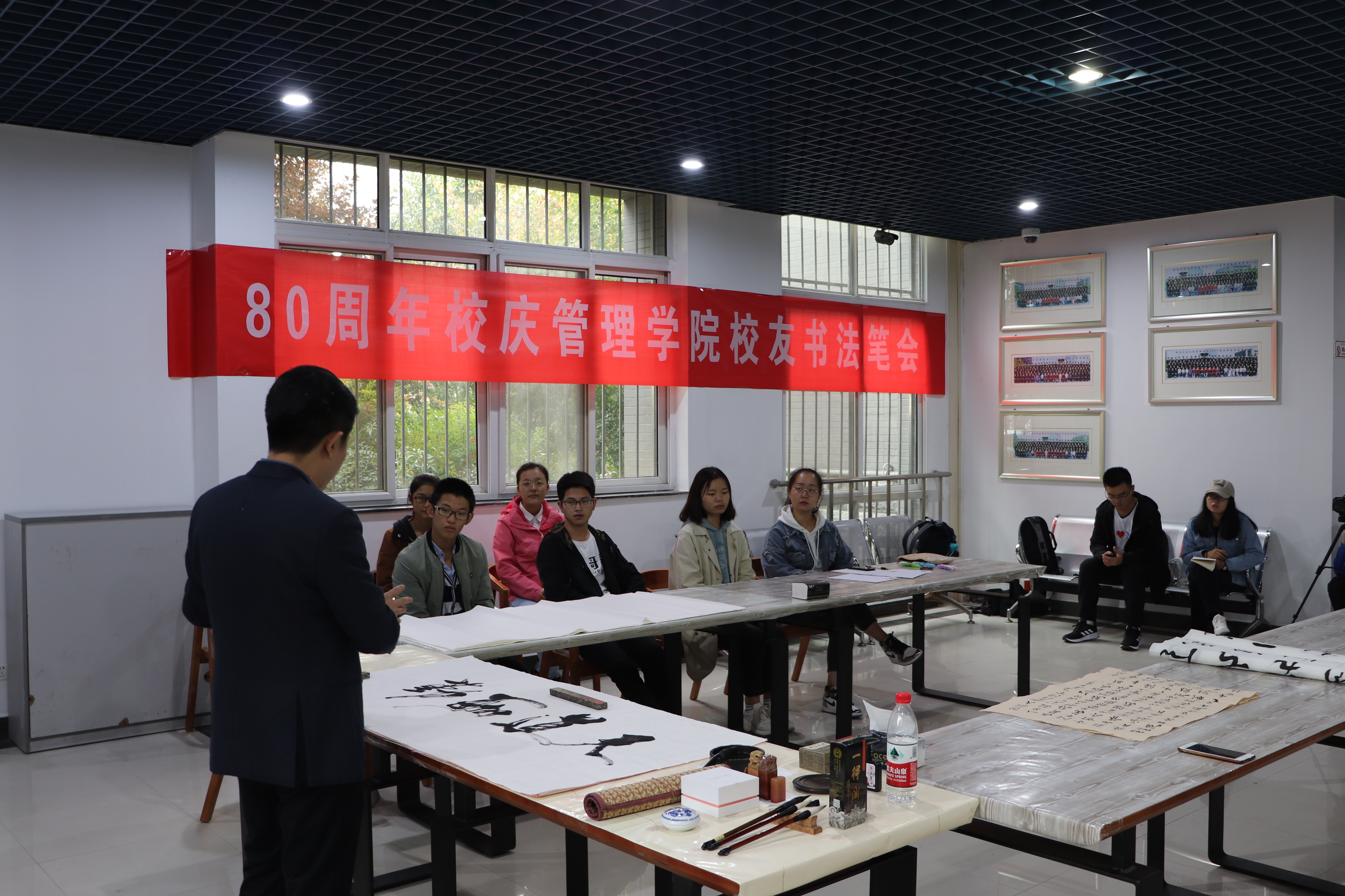 2018年10月14日下午3点,管理学院在校友空间举办“校友书法笔会”活动,共贺学校80周年校庆。活动由管理学院办公室主任周全主持,中华财险西安中支办公室主任,中国书画院会员,陕西金融书画家协会副秘书长,中国MBA联盟第十一届副主席兼秘书长,中国MBA西北联盟第十二届主席,西北工业大学管理学院2013级MBA校友余康受邀参加。