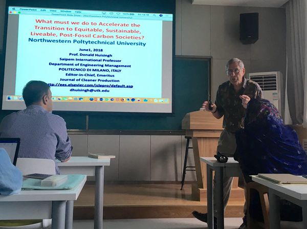6月1日和5日下午14:00,在长安校区管理学院214报告厅,清洁生产杂志(Journal of Cleaner Production)前主编、美国田纳西大学Donald Huisingh教授为我院师生做了两场精彩的系列讲座。报告会由邵婧副教授主持,我院研究生、留学生50余人参加了讲座。