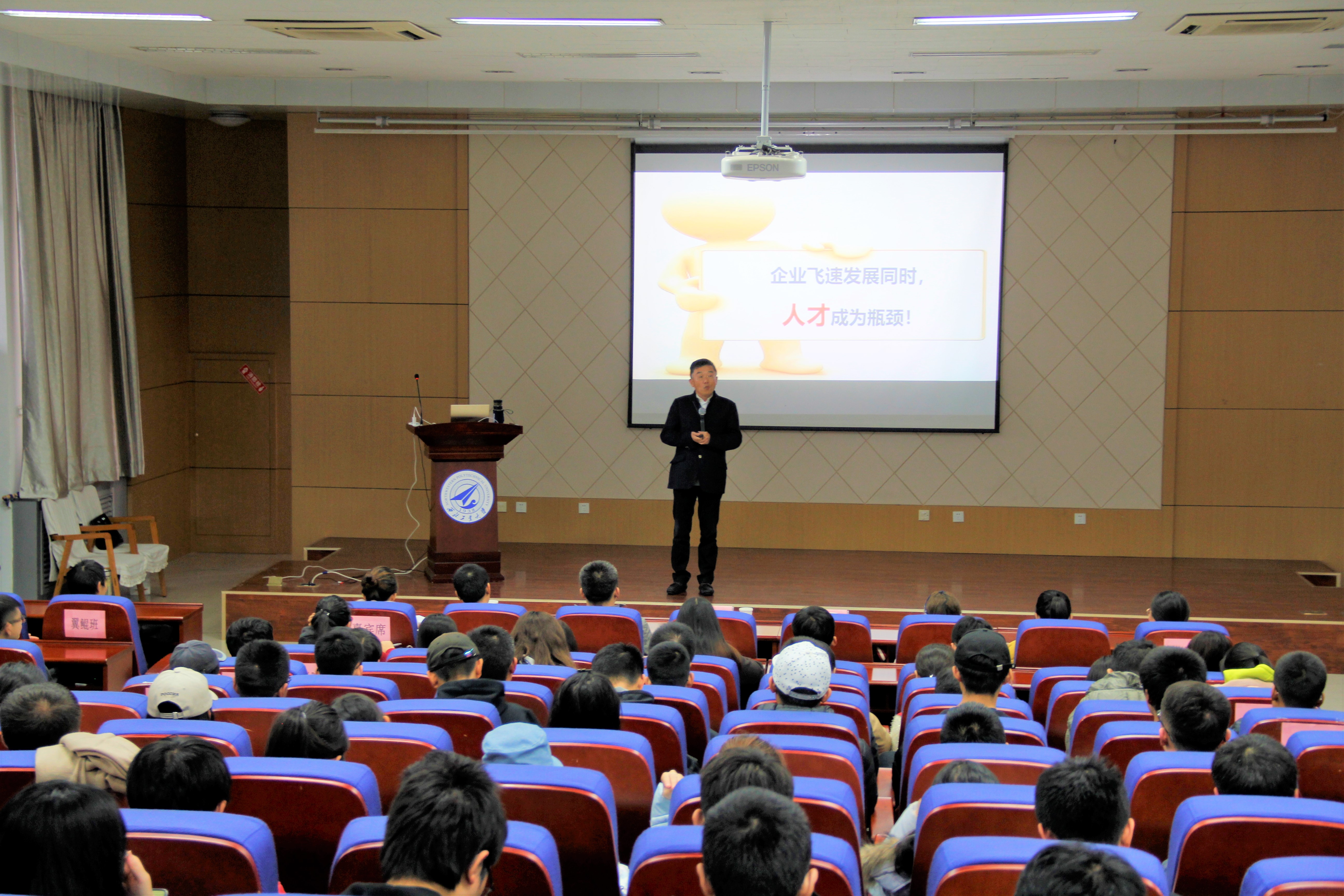 首先,谭老师提出:企业在飞速发展同时,人才成为瓶颈。他引用华为公司《以奋斗者为本》一书中“企业竞争从长期来看是人才的竞争”的观点,表明社会发展的核心竞争力是人才。他说:人才培养是大型知名企业最关注的方面,也是企业能够适应瞬息万变社会的关键因素。在谈及当代大学生需要提升的方面时,谭老师通过真实的案例建议大家练就一身适应市场的本领,同时做好职业生涯规划。