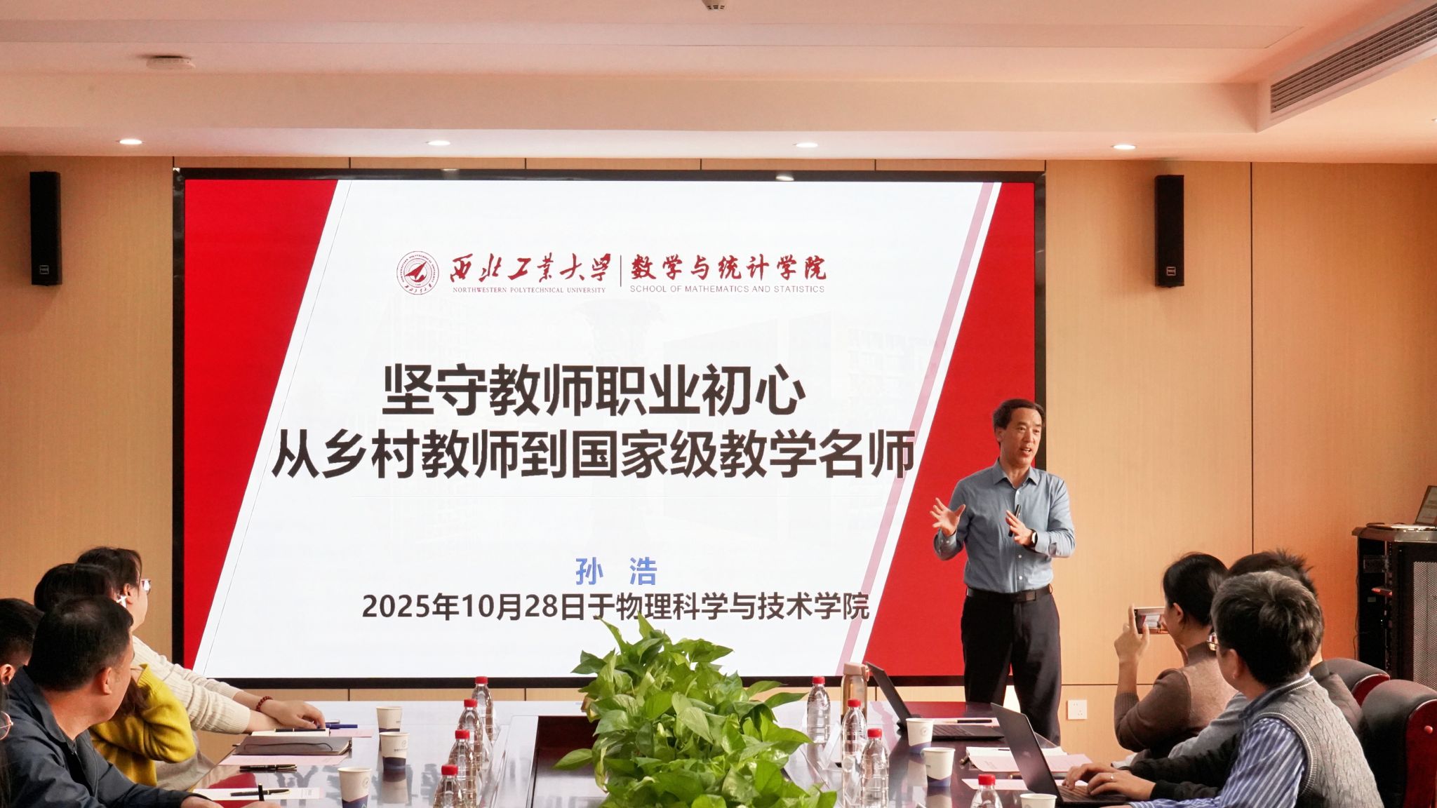 为深入学习贯彻习近平总书记关于教师队伍建设的重要论述,大力弘扬教育家精神,10月28日下午,管理学院和物理科学与技术学院在长安校区开展师德师风专题报告会,数学与统计学院国家级教学名师孙浩教授应邀作专题报告。此次报告也是管理学院“青禾沙龙”系列活动之一。物理科学与技术学院党委书记晁小荣、管理学院党委副书记王海啸、院长助理李乘龙,以及两院党支部书记、青年教师和院办教职工参加。报告会由晁小荣主持。