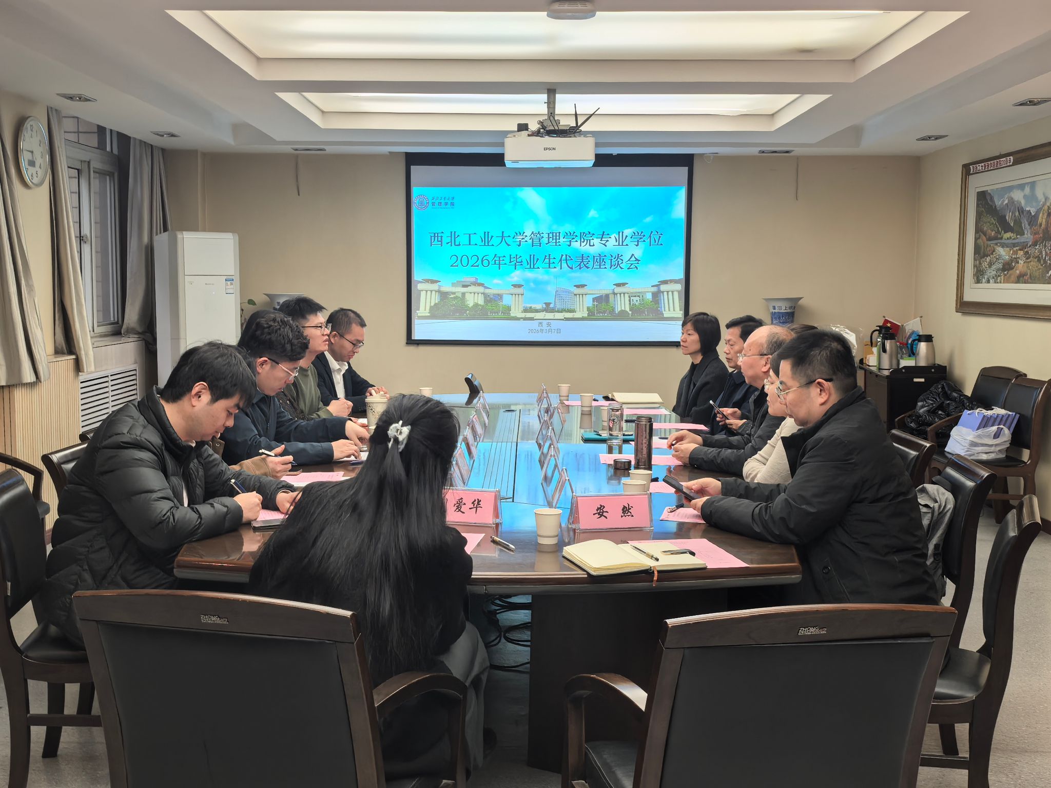 为深化师生交流、传递母校温情,凝聚毕业生奋进力量,3月7日,管理学院专业学位研究生毕业生代表座谈会顺利召开。学院党委书记张爽、副院长郭云涛、教学督导代表郭鹏教授、各教育中心主任及相关教学与学生工作负责人,与毕业生代表齐聚一堂,重温求学时光,共话师生情谊,畅叙美好未来。座谈会由郭云涛主持。
