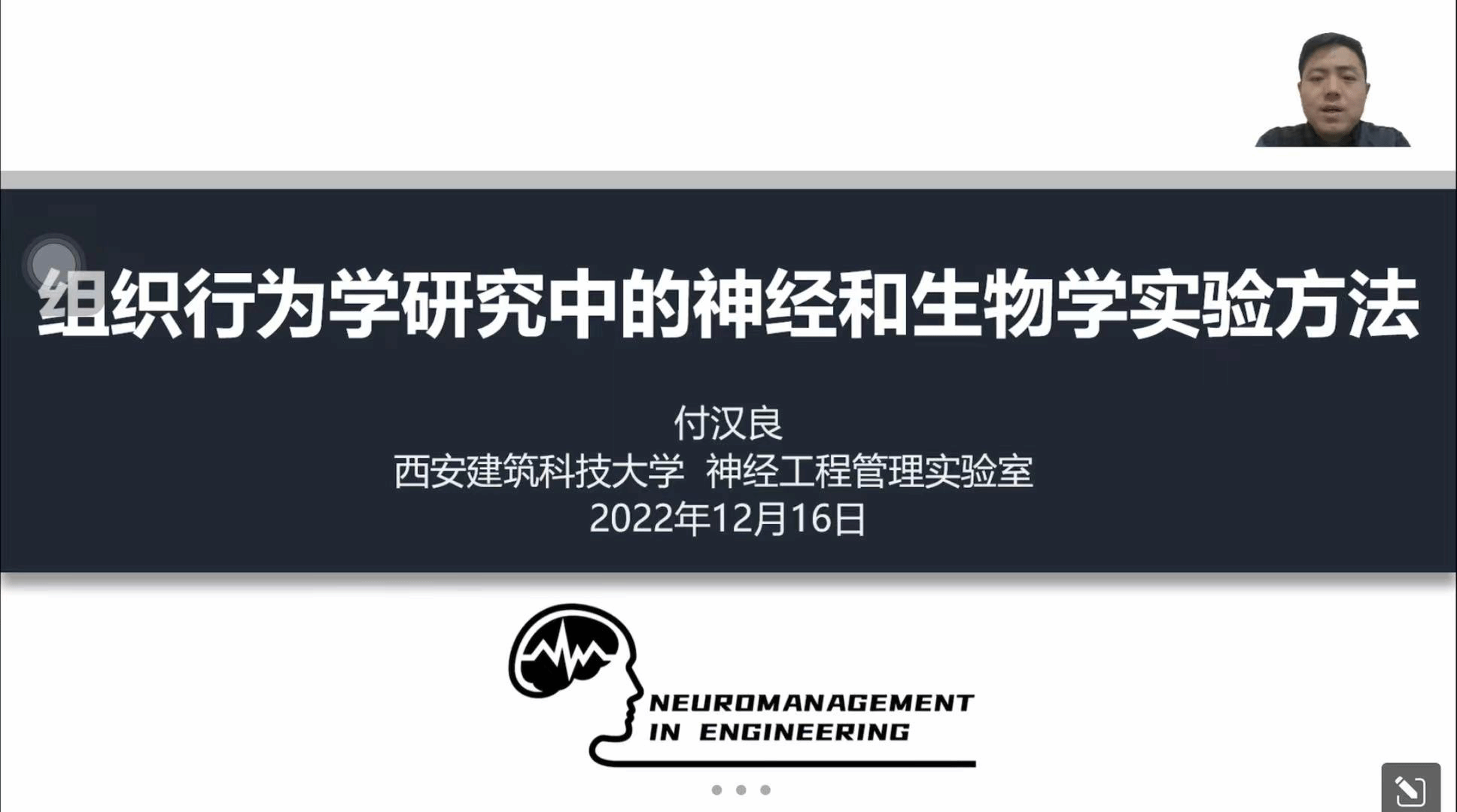 12月16日上午,管理学院线上组织学术报告会,由西安建筑科技大学神经工程管理实验负责人付汉良副教授进行报告,王娟副教授主持。