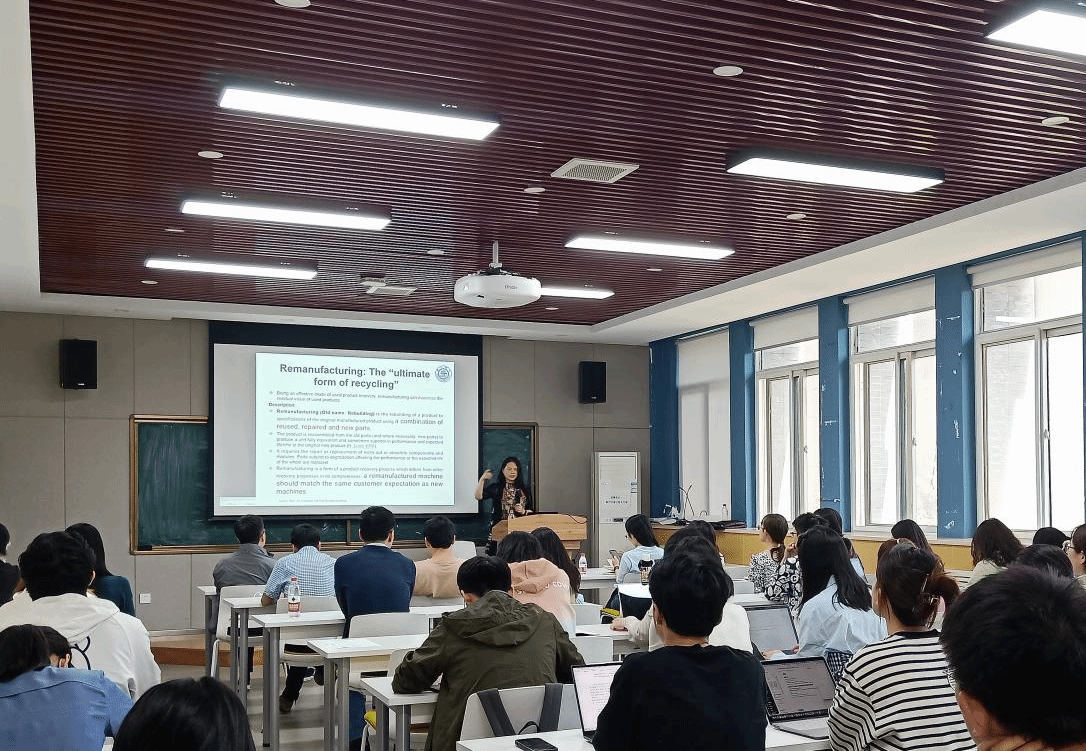 2023年5月30日上海交通大学安泰经济与管理学院朱庆华教授应邀于长安校区管理学院做了题为“数据驱动的再制造产品营销决策研究”的报告会,本次报告由贾明教授主持,吸引了众多师生聆听学习。