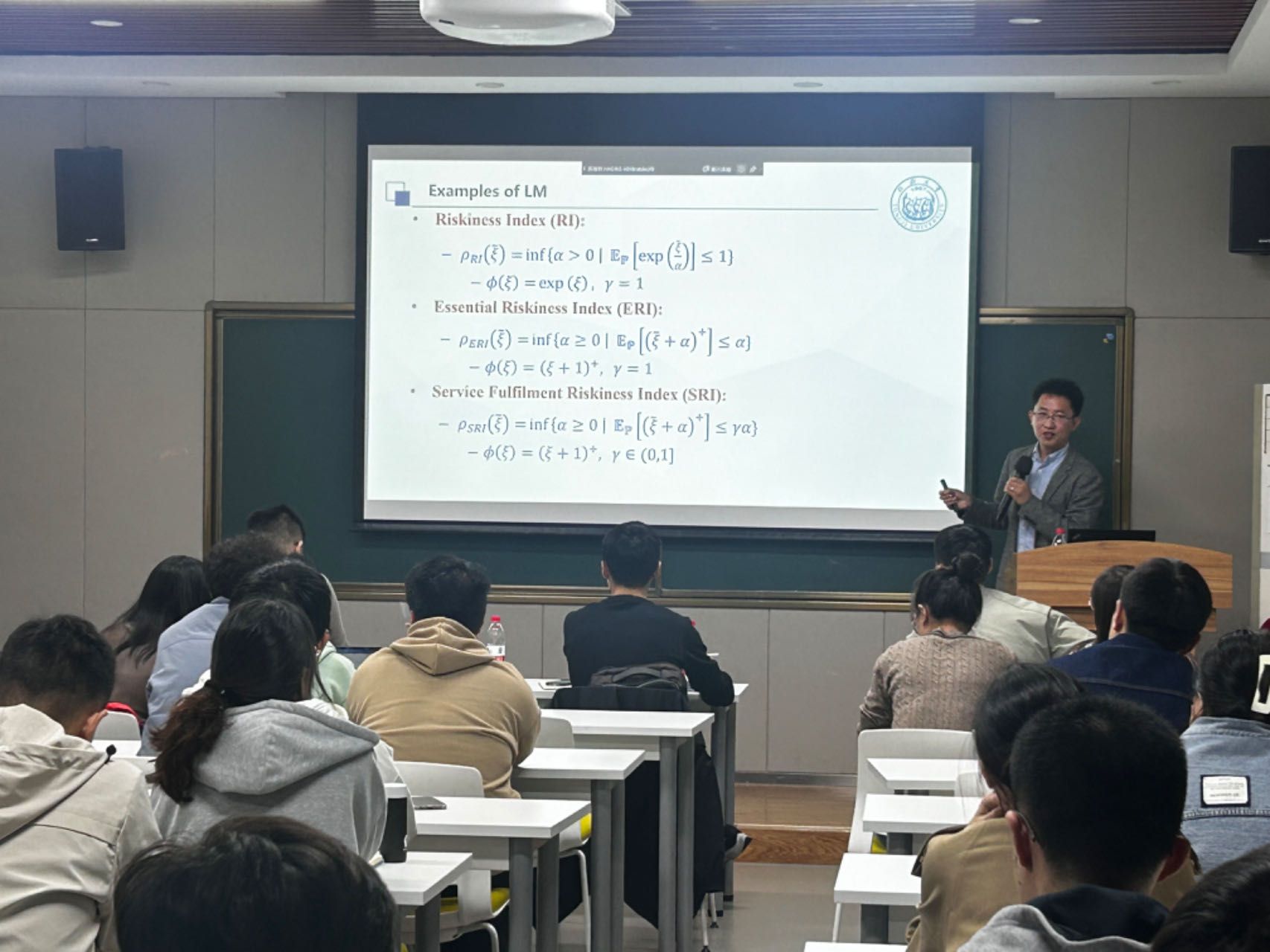此次报告会中,张真真老师首先指出传统路径优化问题的确定性削弱了其在现实生活中的适用性,研究不确定行程时间下的路径优化问题有助于提供更优质的服务,具有重要的现实意义。接着,张真真老师介绍了考虑不确定出行时间下带时间窗的车辆路径问题,目标是在保证总出行成本不超过规定预算的前提下,确定车队在规定时间窗内最大限度到达客户地点的路线。张真真老师指出,该研究提出并优化了一种新的效益衡量方法,即广义风险指数,考虑了配送在客户点的迟到概率和程度风险。张老师解释了该风险指数显著的管理和计算特性。随后,针对研究问题,张老师介绍了基于集合划分的问题模型,及结合路径枚举和分支价格切割算法的精确解框架。最后,张真真老师简要阐述了数值实验及部分结果。