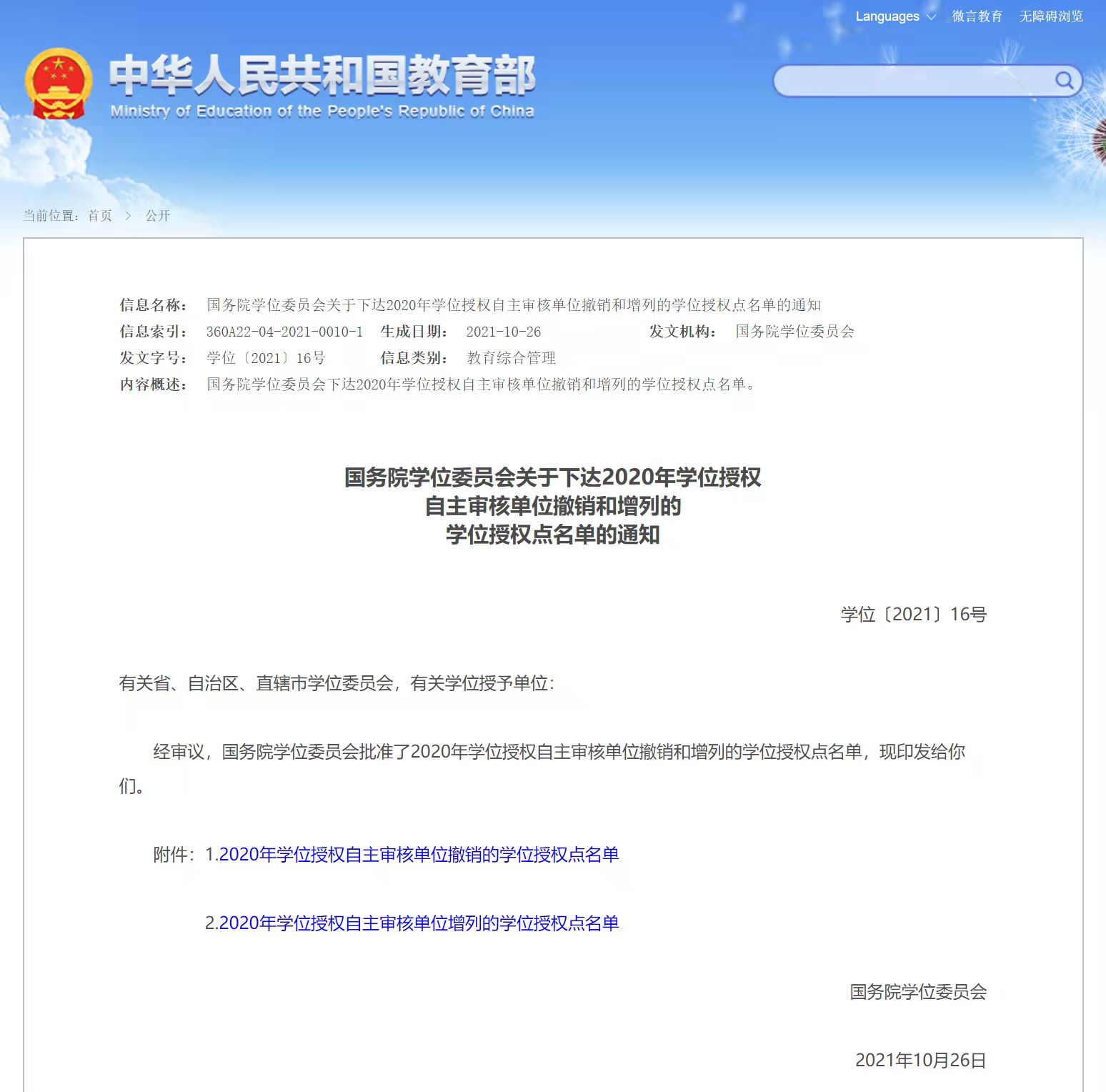 近日,国务院学位委员会印发《关于下达2020年学位授权自主审核单位撤销和增列的学位授权点名单的通知》(学位[2021]16号),经国务院学位委员会审议批准,管理学院成功增列工商管理一级学科博士学位授权点,形成管理科学与工程学科、工商管理学科“双轮驱动”发展的新格局。
