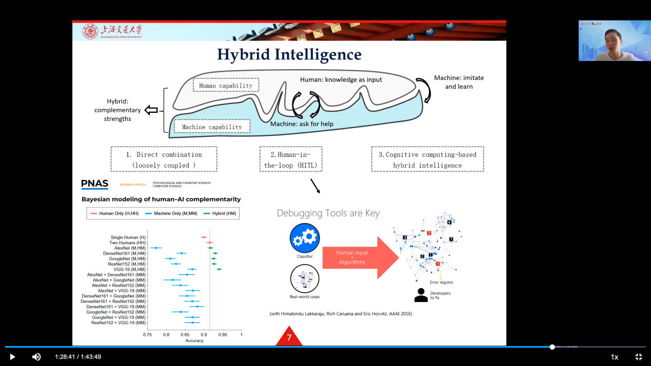 魏老师对汇报论文的研究动机、建模和实验过程、研究贡献和意义进行了详细阐述,细致地向老师和同学们分享了研究设计的过程,交流了混合智慧相关的研究前沿现状。在解答与会师生提出的问题时,他认为AI的行为科学研究同样具有重要意义,AI和人类的有效互动是未来的研究热点之一。最后,魏老师向学生们分享了自己博士期间的学习经验,提出了“规划-目标-执行”三个步骤,鼓励同学们坚持、专注地对待科研任务,做好科研选题和研究。