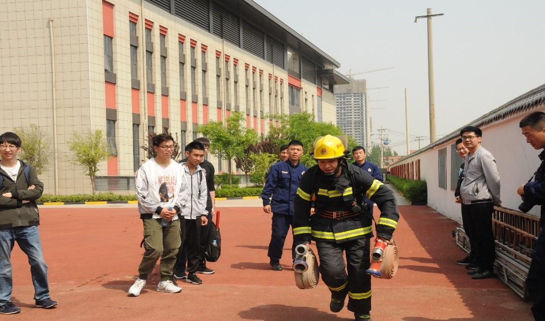 活动最后,消防员带领同学们来到消防塔下,让同学们真实模拟了一把消防战士,学生代表背负厚重的消防装备,快速爬楼,体验消防战士在火灾现场的争分夺秒,参与者纷纷表示是几乎不可能完成的任务,而消防员在实际救援任务中面临的状况比这更加复杂,学生们从中真切体会到了消防员训练的艰辛和不易。