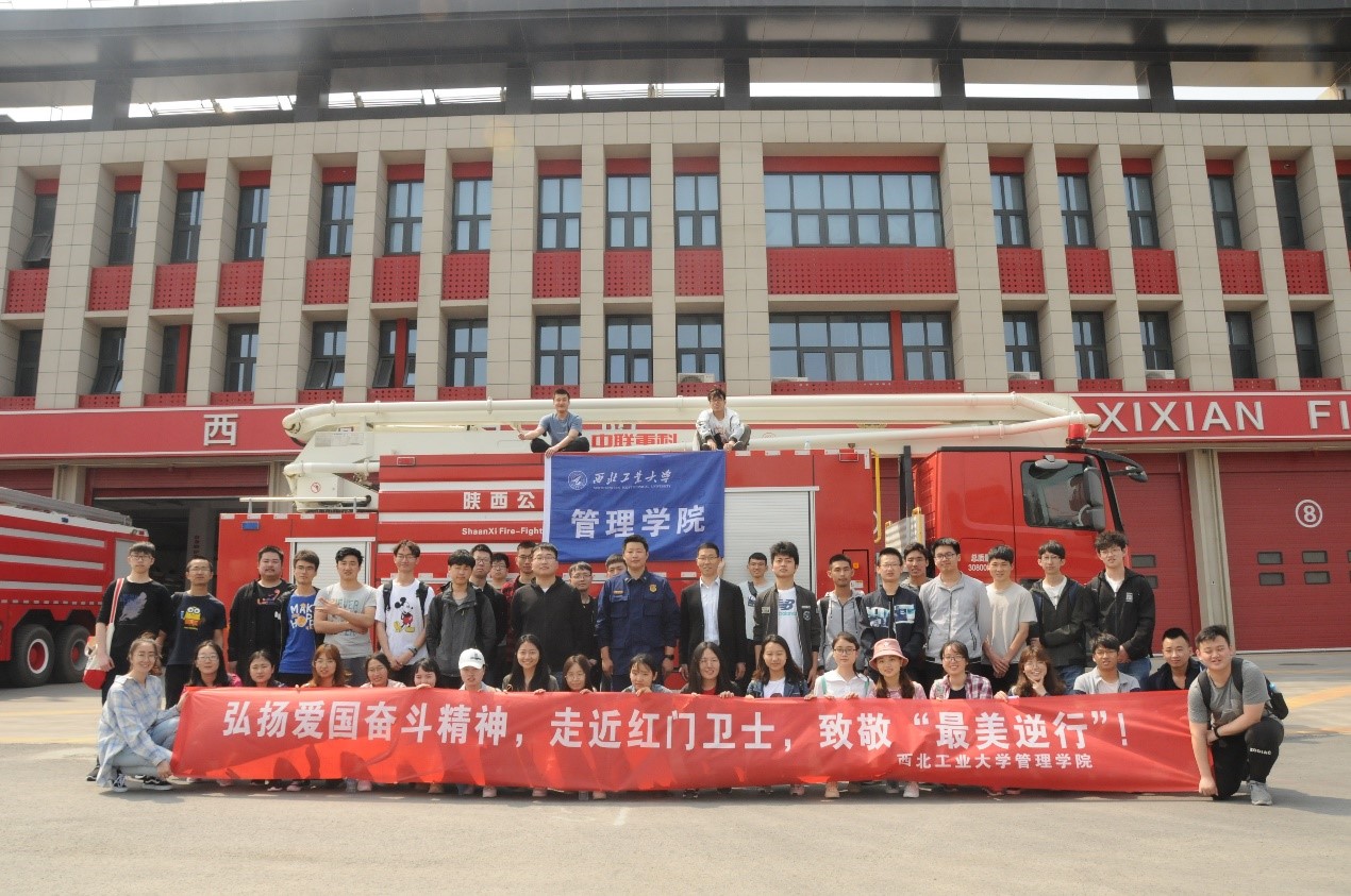为深入贯彻落实习近平总书记全国教育大会、学校思想政治理论课教师座谈会上的重要讲话精神和“三全育人”、“十育人”要求,扎实做好高校“立德树人”工作,2019年4月19日,西北工业大学管理学院组织学生党员代表和团员代表赴陕西省西咸新区消防救援支队开展“走进红门卫士,致敬最美逆行,弘扬爱国奋斗精神”主题国防教育活动。引导学生学习消防官兵不畏牺牲勇于奋斗的精神,树立维护安全稳定的意识。管理学院党委副书记曹子尧同学生代表一同参与。