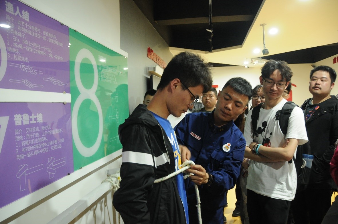 随后同学们来到了消防员的生活区,参观了消防战士的宿舍、篮球场、图书室、心理咨询室等场所,切身走进消防英雄们的日常生活。在学生的邀请下,消防官兵们同学生代表之间开展了一场别开生面的篮球友谊赛,在互动的过程中,大家看到了消防战士们活泼多彩的一面。随后消防员带领大家参观了科普教育室,耐心为大家讲解消防知识与逃生技巧,提高了同学们的消防知识水平与应急处置能力。