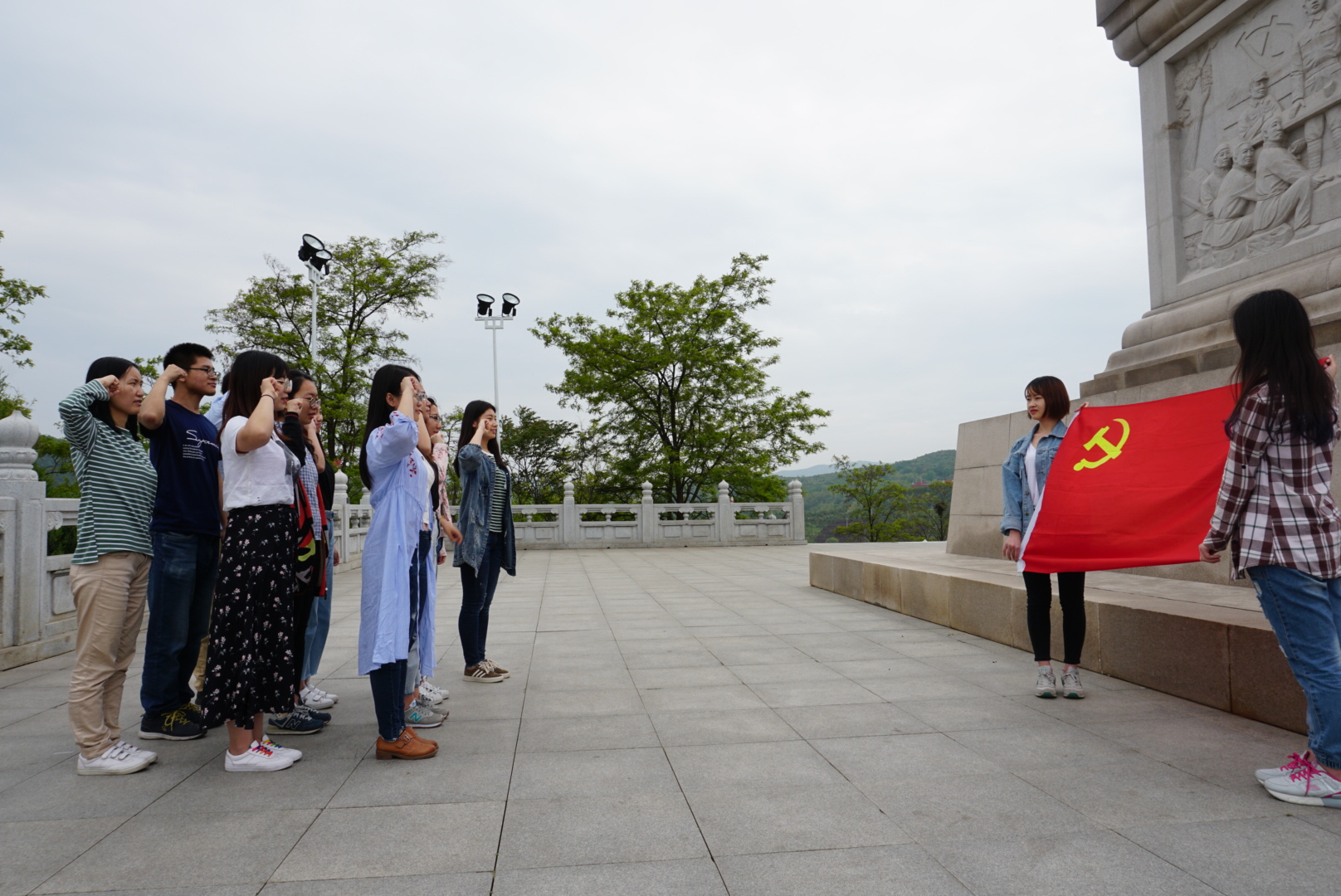 走出革命纪念馆,支部党员来到革命烈士纪念碑前,举行了郑重的重温入党誓词活动。党员同志面对鲜红党旗庄严宣誓,许下了对党忠诚、为党献身的神圣誓言,再次接受了一次生动而深刻的革命传统教育和爱国主义教育。此次宣誓让各位党员同志将“不忘初心、砥砺前行”的坚定信念牢记心中。随后,大家在纪念碑前合影留念。