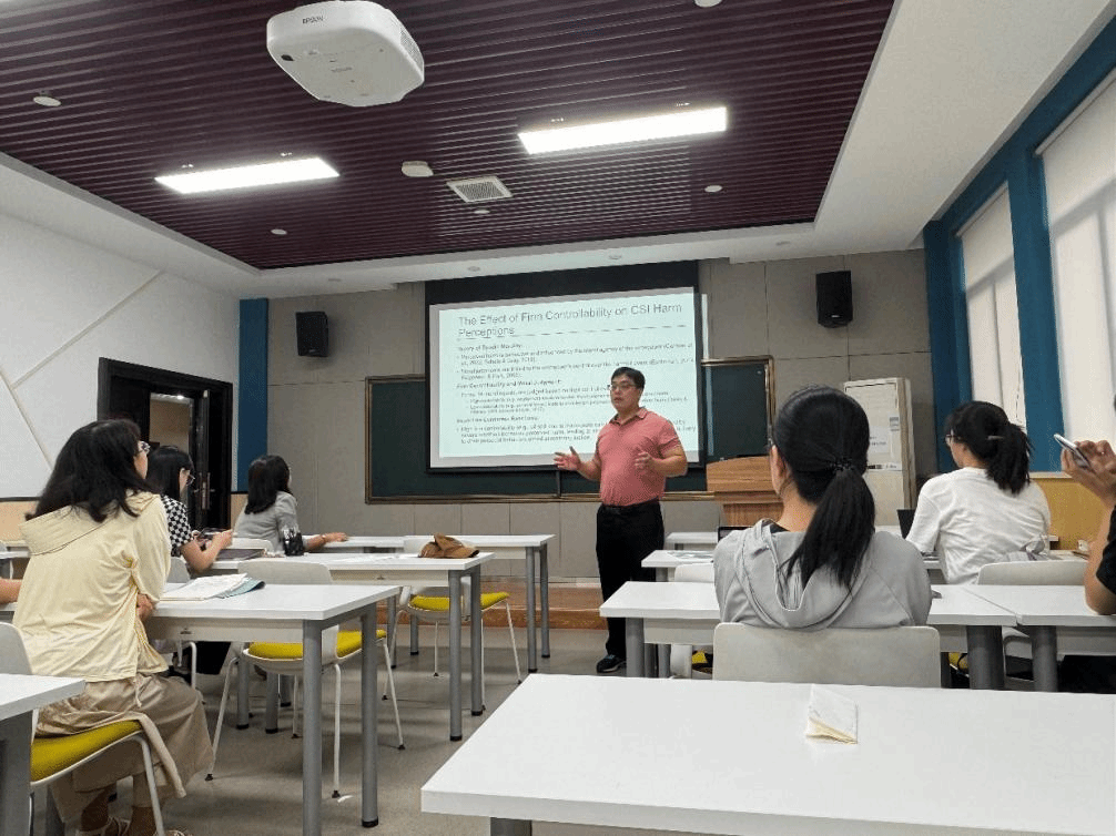 2024年9月5日上午,应管理学院邀请,英国曼彻斯特大学何宏伟教授来学院开展学术交流,于管理学院214会议室作了题为“企业不负社会责任(CSI)实践对消费者亲社会行为的影响”的学术讲座。本次讲座为管理学院2024海外系列讲座第22期,由王娟副教授主持,管理学院部分教师和研究生参与。
