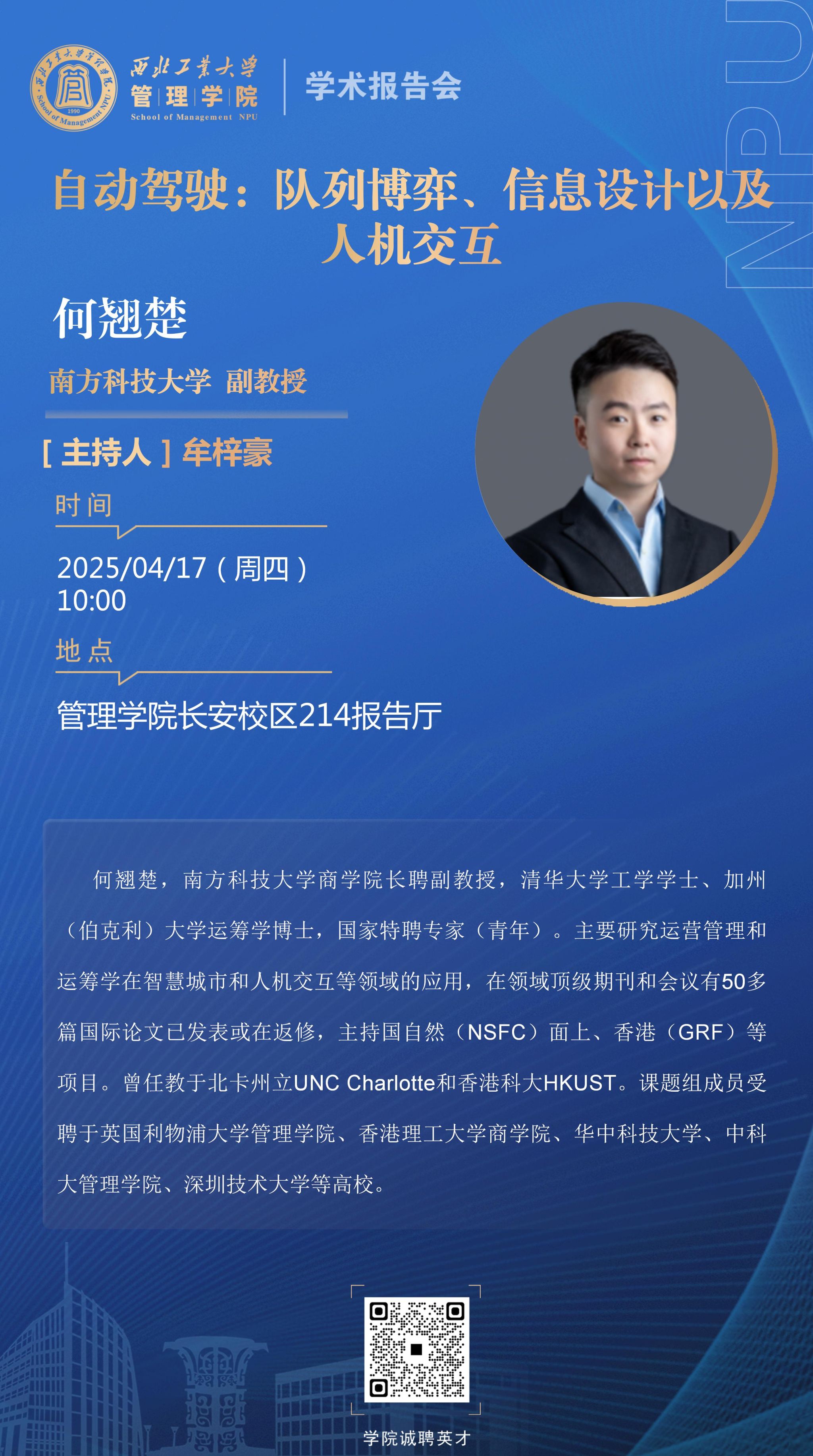 【学术报告】自动驾驶:排队博弈、信息设计以及人机交互