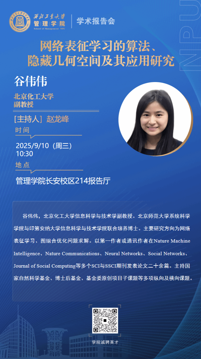 【学术报告】网络表征学习的算法、隐藏几何空间及其应用研究