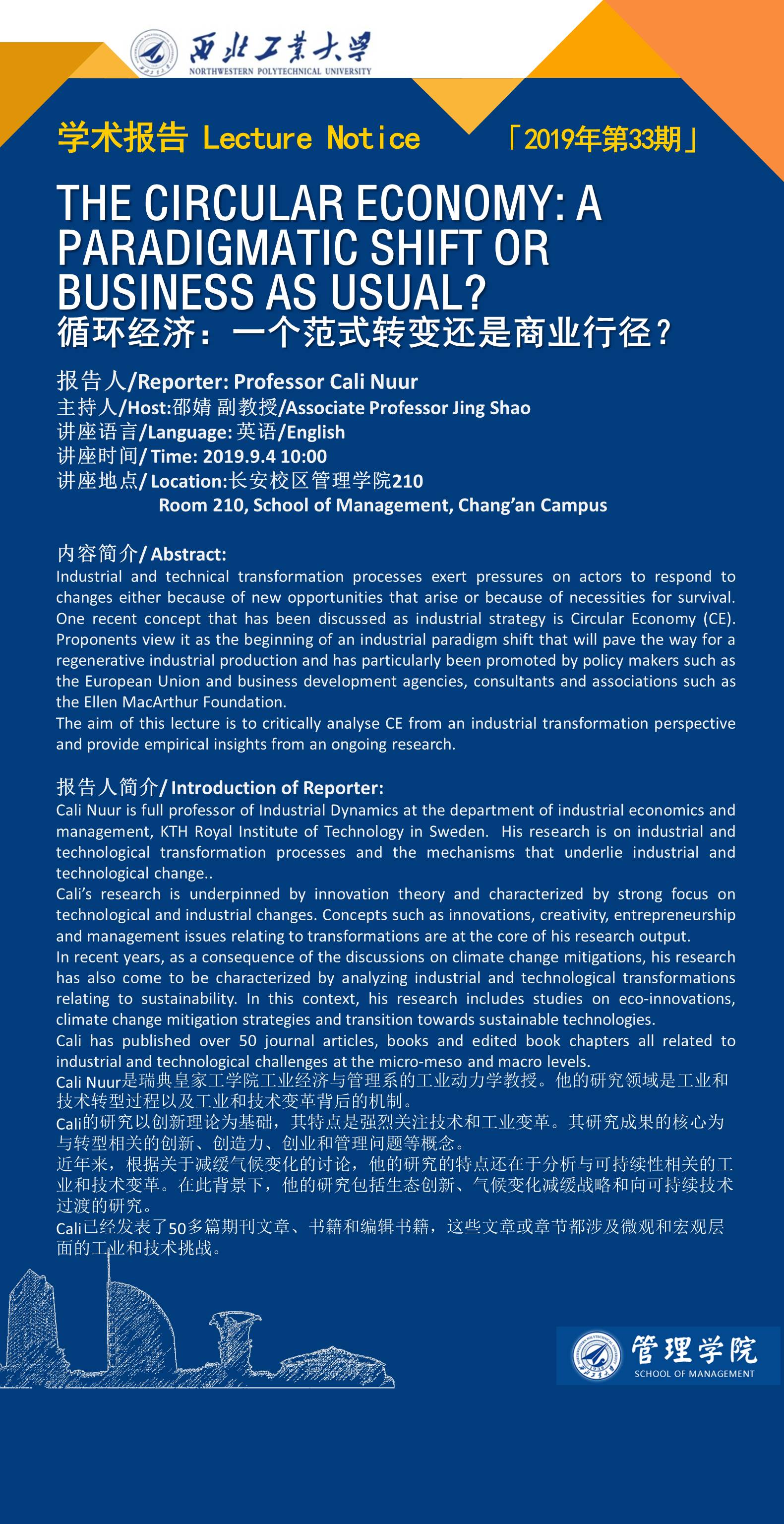 [学术报告]瑞典皇家工学院工业经济与管理系Cali Nuur教授来校作两场学术报告