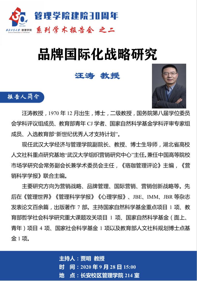 【管理学院建院30周年系列学术报告会之二】品牌国际化战略研究