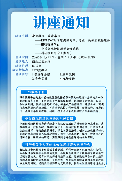 【讲座通知】聚焦数据、追求卓越——EPS DATA 为您提供简单、专业、高品质数据服务
