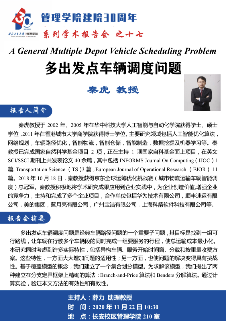 【管理学院建院30周年系列学术报告会之十七】多出发点车辆调度问题