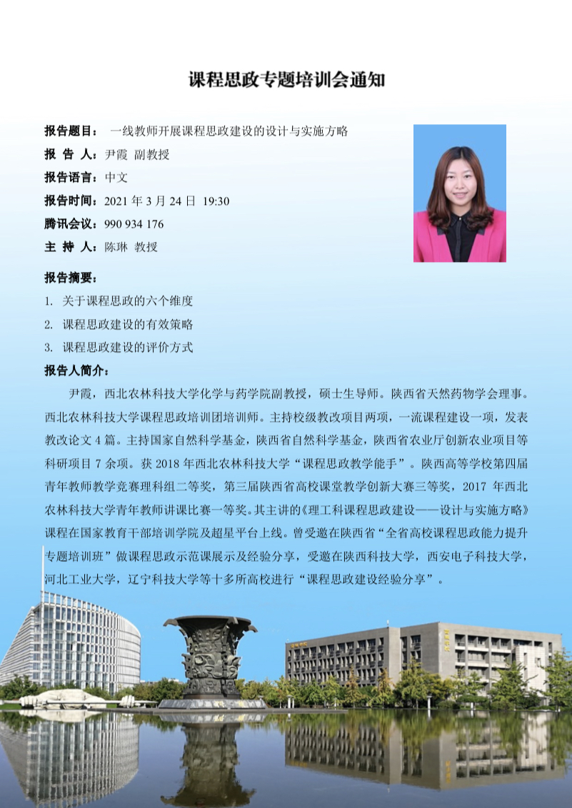 【课程思政专题培训会】一线教师开展课程思政建设的设计与实施方略——尹霞副教授