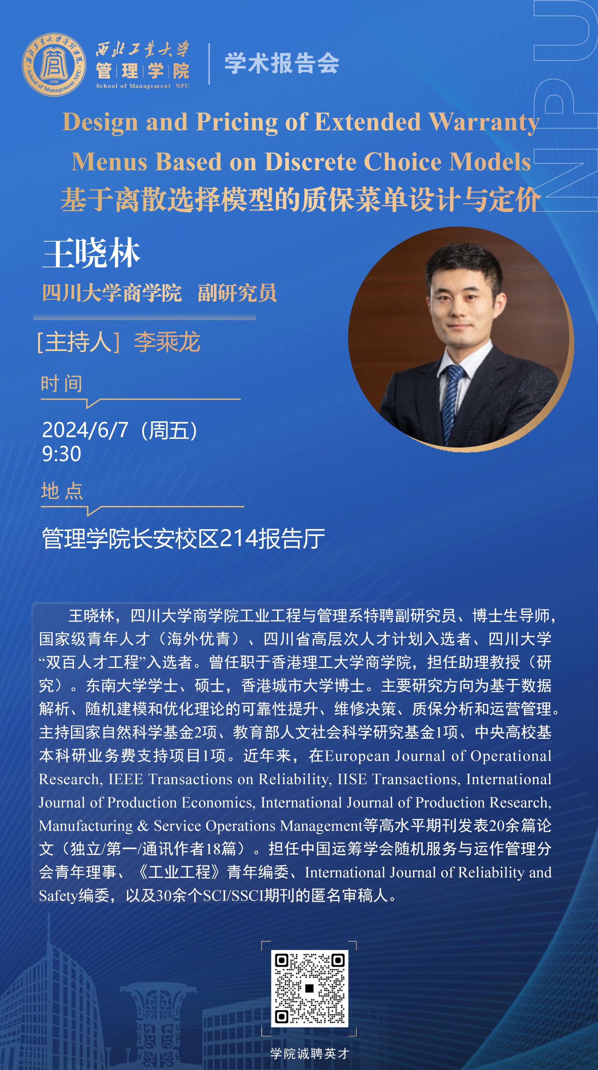 【学术报告】Design and Pricing of Extended Warranty Menus Based on Discrete Choice Models基于离散选择模型的质保菜单设计与定价