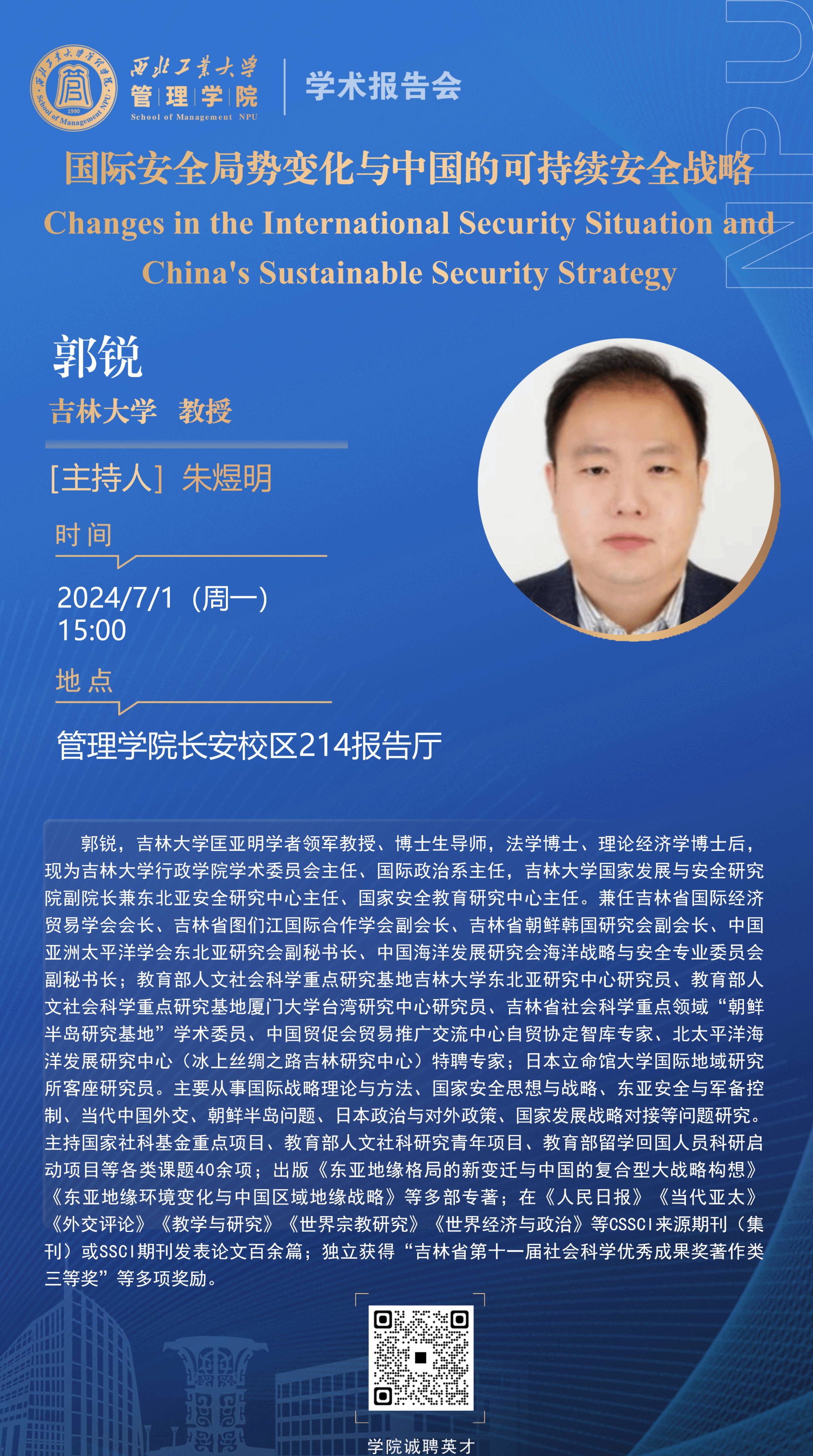 【学术报告】国际安全局势变化与中国的可持续安全战略Changes in the International Security Situation and China's Sustainable Security Strategy