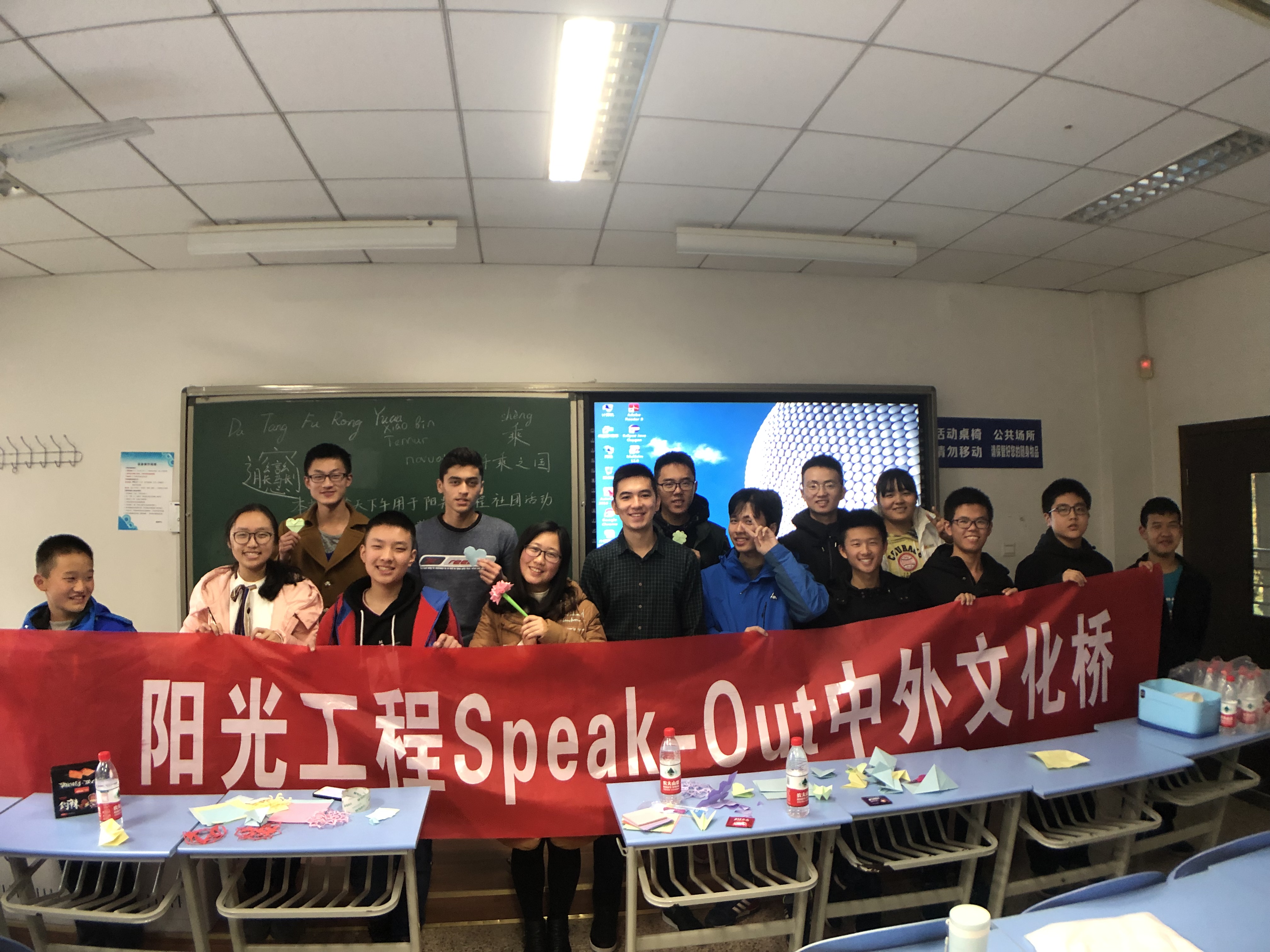 活动结束后,大家合影留念。此次交流活动只是“阳光”举办的众多交流活动中的一道亮丽的风景线,相信在全体阳光人的努力下,会有更多的国际友人参与到“阳光”的交流活动中,也会有更多的同学能了解世界,走向世界。(管理学院:文:王泠 刘杨兰;图:宋成梁;审核:曹子尧)