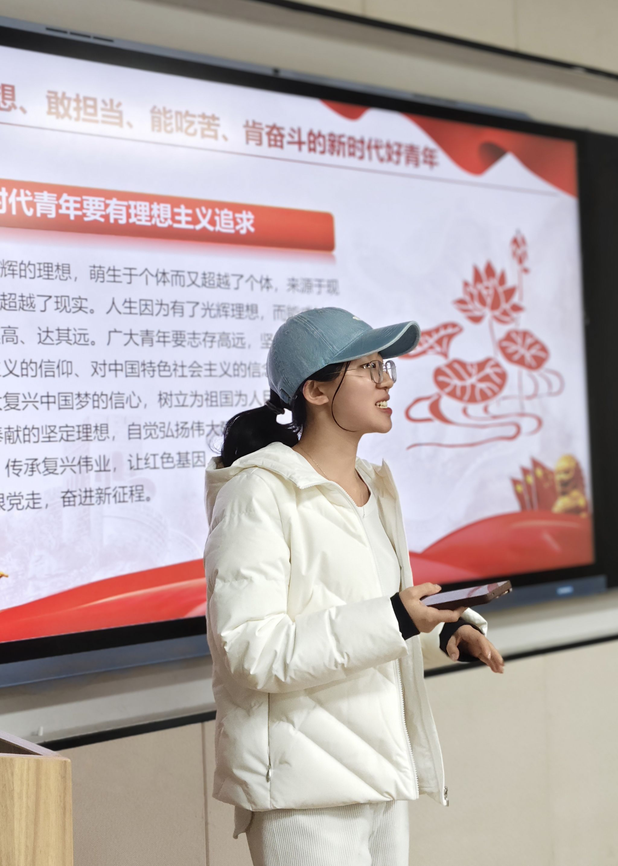 班会伊始,班长关名孜带领全班同学学习习近平总书记2025年五四青年节寄语,聚焦“坚定理想信念、厚植家国情怀、练就过硬本领、发扬奋斗精神”的期望,结合支教志愿者扎根边疆的鲜活案例,呼吁同学们筑牢专业根基、厚植家国情怀,以行动践使命,不负青春韶华。