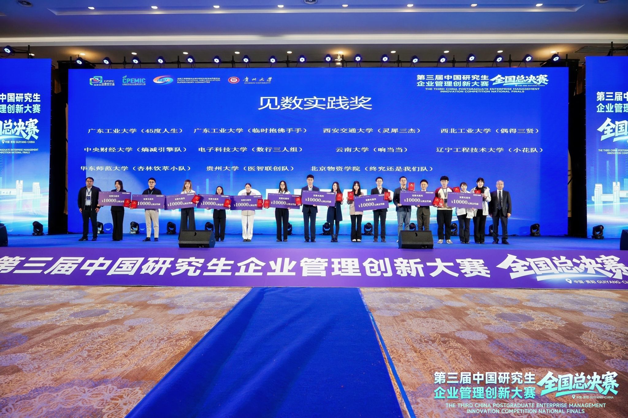 11月7日-9日,2025年第三届中国研究生企业管理创新大赛总决赛在贵阳圆满落幕。作为由教育部学位管理与研究生教育司指导,中国学位与研究生教育学会、中国科协青少年科技中心主办,全国工商管理专业学位研究生教育指导委员会联合主办的国家级赛事,本届大赛竞争强度与参赛规模再创新高——共有全国150所高校的411支研究生团队参加总决赛。管理学院学子凭借扎实的专业素养与高效团队协作,最终获奖26项,更将赛道二的最高荣誉“见数实践奖”(全国仅设11项,获奖率低至1%)收入囊中,学校亦连续三届荣获“优秀组织单位”称号,彰显硬核育人实力。