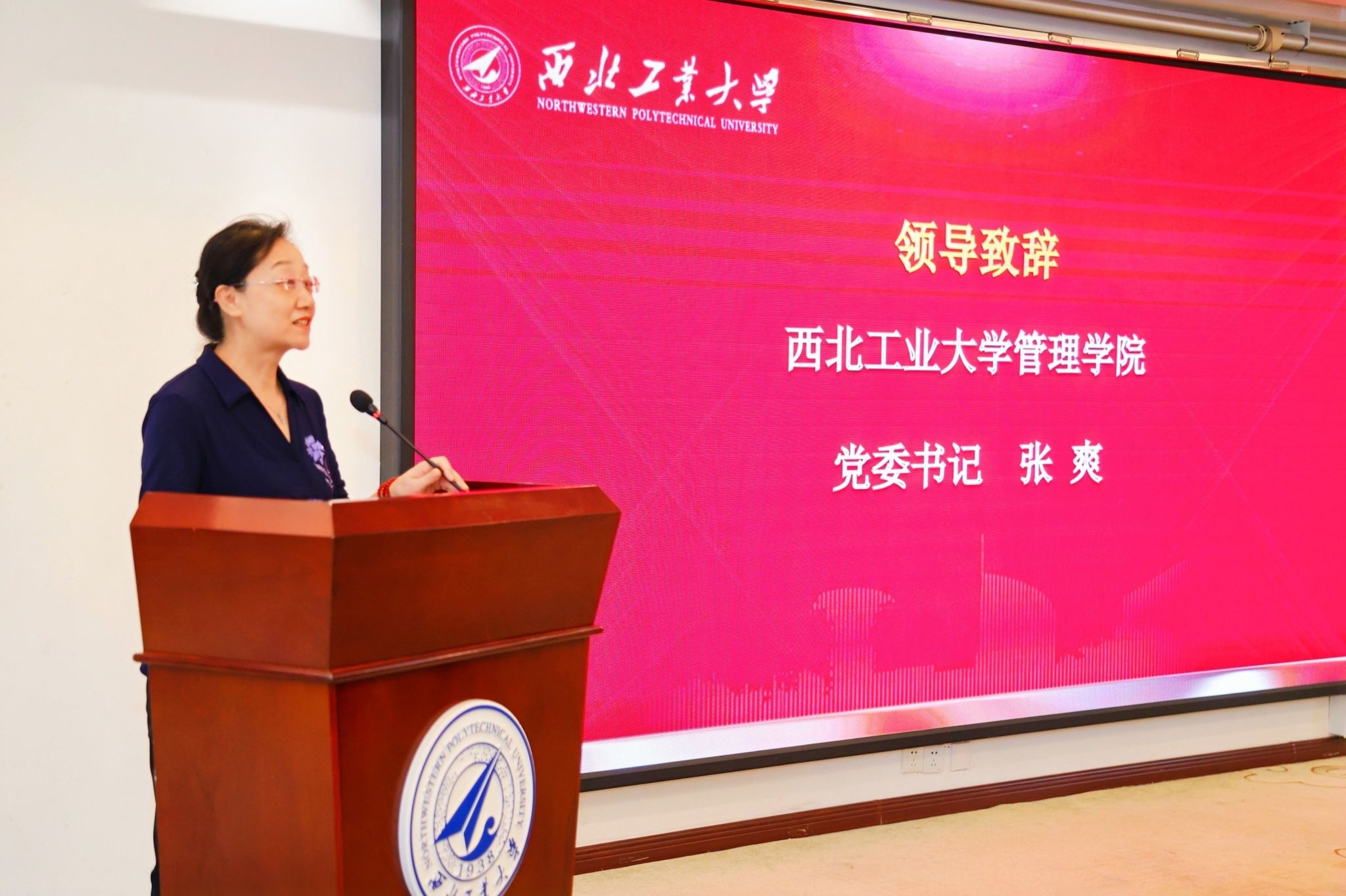 张爽书记致辞,代表学院向本次圆满完成学业的同学们表示诚挚的祝贺,对陕西省工信厅长期以来给予西工大管理学院的关心和支持表示衷心的感谢。中小企业是国民经济和社会发展的主力军,承担领军人才和专精特新培训工作,是工信部、工信厅对我校的信任,也是我们发挥“服务社会”职能的重要举措。学院自2013年以来,已连续开办12 期领军人才培训班,累计培训近750余人,2022年新增专精特新企业能力提升培育班,为提高中小企业经营管理水平、推动陕西经济高质量发展,提供了强有力的智力支持。结业不毕业,欢迎各位企业家常回学校参加复训,也希望我们结业的学员无论走到哪里,都善于学习、敢于担当,都勇立潮头、敦行立世,常怀求索之心,永葆创新之智。