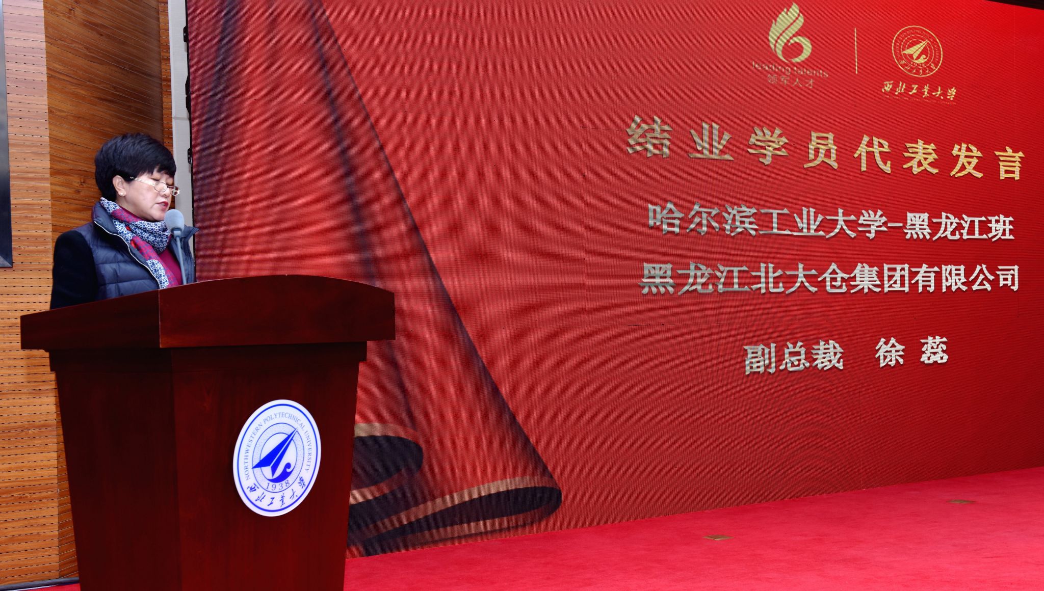 侯成义副校长致辞,首先代表学校对新学员表示热烈欢迎,对顺利结业的学员表示诚挚祝贺。他讲到:“今年11月工信部金壮龙部长来校调研时也指出,服务支撑加快推进新型工业化、建设制造强国和网络强国,是部属高校的重要使命”。哈工大和我校作为“工信七子”,流淌着同样的军工血脉,承担领军人才培训工作,是工信部对两所高校的信任,也是我们发挥“服务社会”职能的重要举措。西工大作为“工信部中小企业经营管理领军人才培训”第一批获授权机构,自2013年以来已连续开办了12期领军人才培训,累计培训近700余人,为陕西经济转型升级和创新发展提供了强大的智力支持。侯校长表示,希望通过此次培训,建立起校企沟通的桥梁,推动科技创新、人才培养等领域校企实质性合作。
